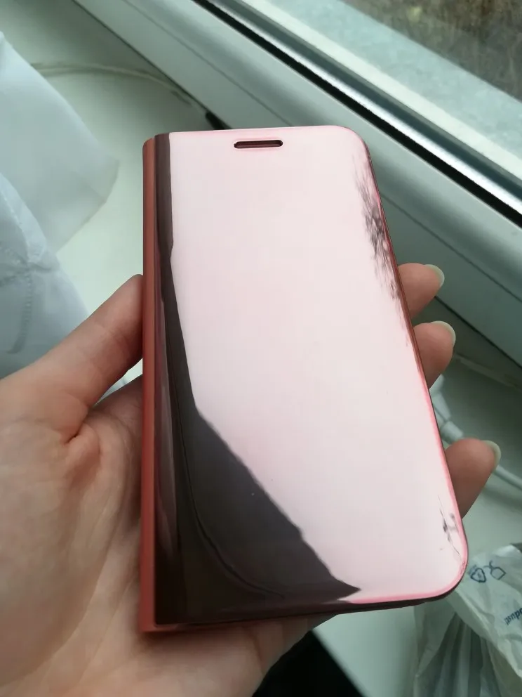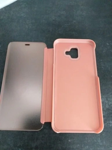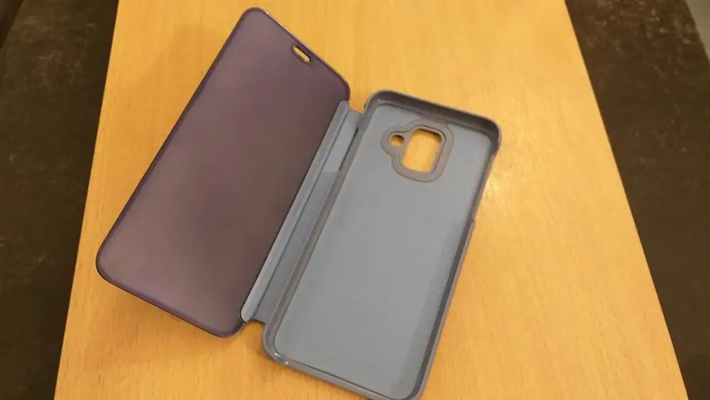 Красивый чехол, зеркальная крышка. На Самсунг А6 подошел идеально. Пришел быстро, в целости. Рекомендую!
