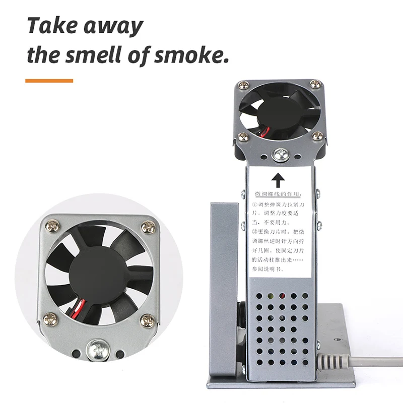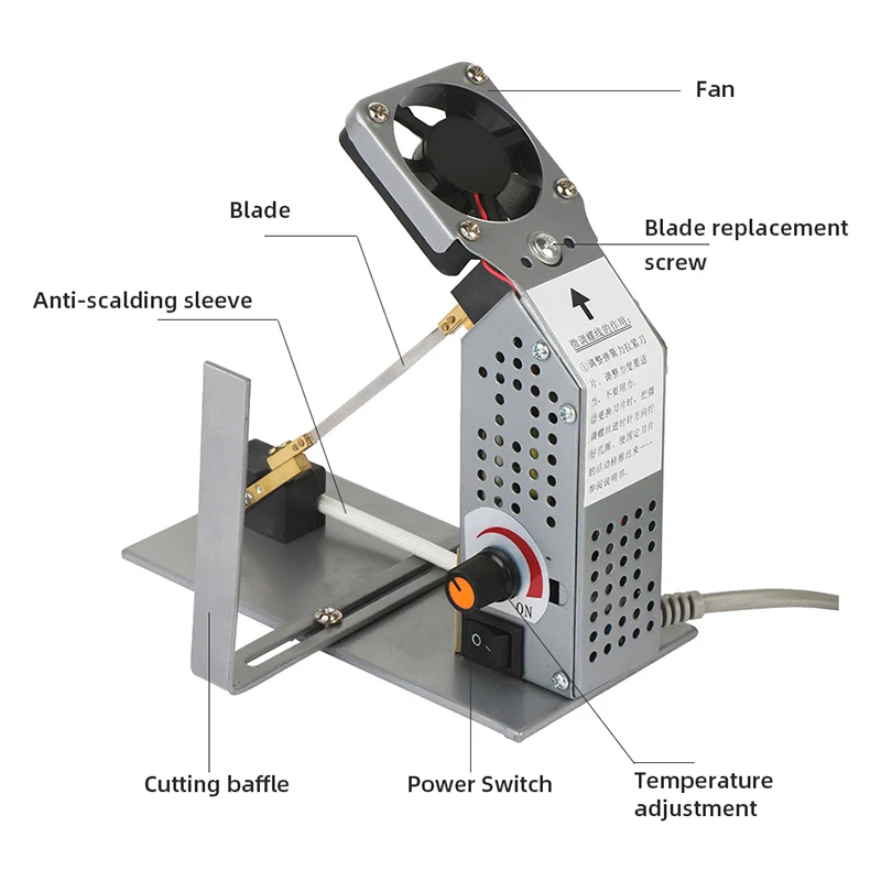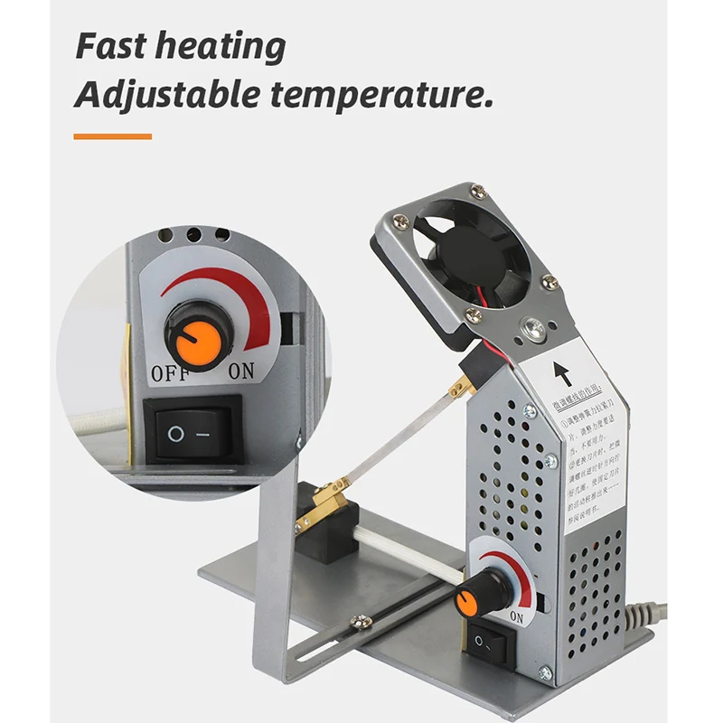 Быстро нагревается, регулируемая температура, скорость резки, поверхность реза чистая, низкое энергопотребление, использование изоляционного трансформатора, а выходное напряжение составляет всего 2-3 в, очень безопасно. Лезвие долгий срок службы. Не ломкий, маленький, простой в использовании. С вытяжным охлаждающим вентилятором машина запускает вентилятор, чтобы начать работу.