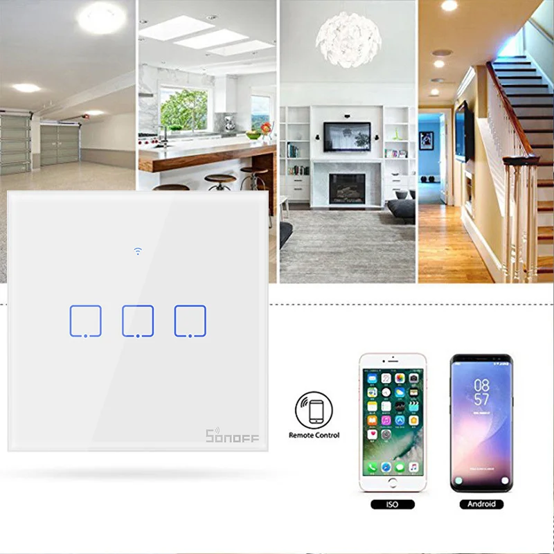 Умная панель SONOFF T0 3C-TX EWeLink, беспроводной пульт дистанционного управления через приложение для семьи, Настенные переключатели с Wi-Fi, работает с Alexa Google
