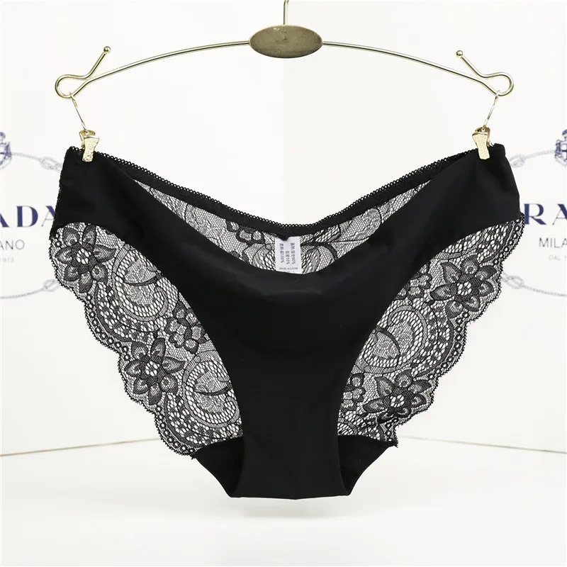 Трусы женские, кружевные, бесшовные, хлопковые, дышащие, прозрачные, размера плюс, 1 шт.