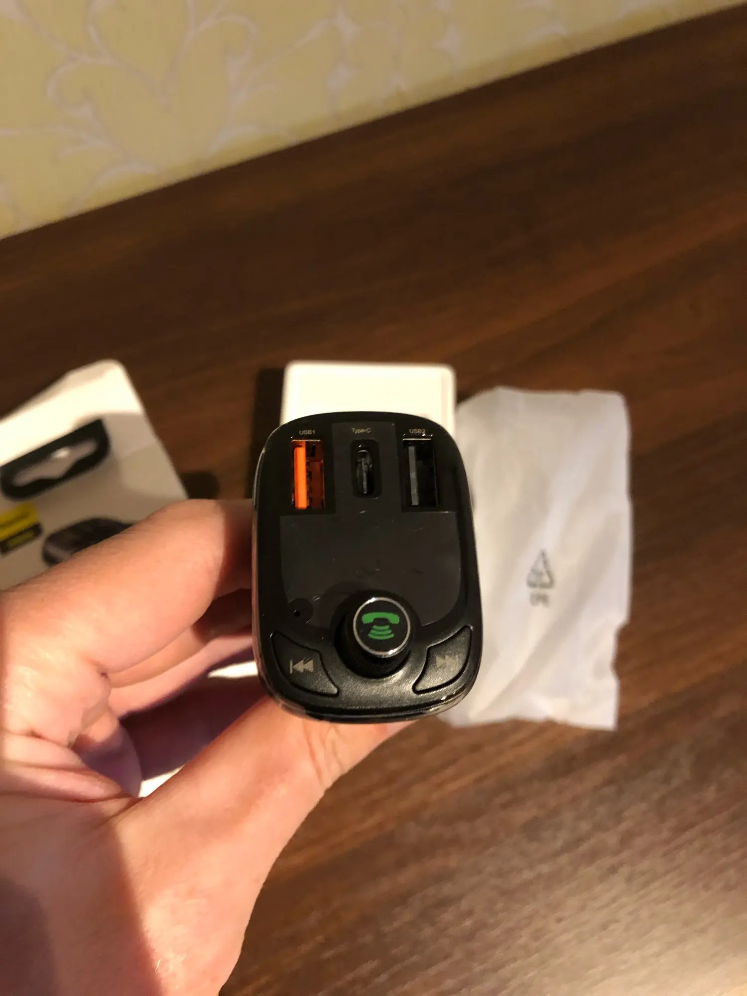 Доставка быстрая. Товар соответствует описанию. Все работает, т.е: любой контент с телефона можно передавать на трансмиттер (Ютуб, онлайн радио, просто музыку с телефона и т.д.), причем с трансмиттера можно переключать треки, в т.ч. и на ютубчике; Зарядка работает; Флешка работает, треки переключает; хендс фри работает, любые входящие (слышимость в обе стороны хорошая), или последний исходящий. Прием звонка -однократное нажатие, набор номера-двойное нажатие на трубку; Настраивается на любую частоту (долгое нажатие на трубку и крутилкой выставляешь); регулируется громкость; Если не подключен блютус, показывает напряжение в бортсети; блютус подключается быстро; самое главное качество передачи сигнала достойное. Нужно найти частоту, на которую не будут залазить никакие станции и передача сигнала будет абсолютно без фона и какого либо шипения, что меня удивило. Из недостатков могу отметить только отсутствие полноценного дисплея с возможностью выбора треков или абонентов из телефонной книг