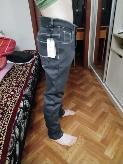 Качество среднее, какой-то химический запах. Внизу джинсы не заужены, могли бы поуже подшить. В целом в холодную снежную зиму двигаться на работу и по делам сойдёт.