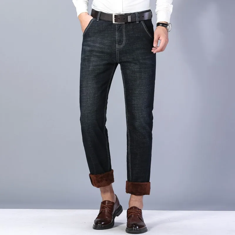 Джинсы мужские зимние эластичные, на флисе, плотные, теплые, 2020
