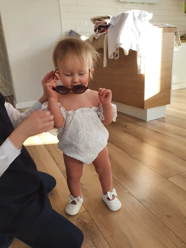 Боди понравилось. Брала размер 12м. Дочке 8 месяцев (70 см) - по длине только-только. И то только на фотосессию. В носке не очень удобен, потому что держится на груди за счёт резинки, которая норовит сползти вниз и оголить соски))) но так как брали именно для красоты))) пофоткаться , то осталась довольна. Боди нарядненькое. По ширине хороший запас