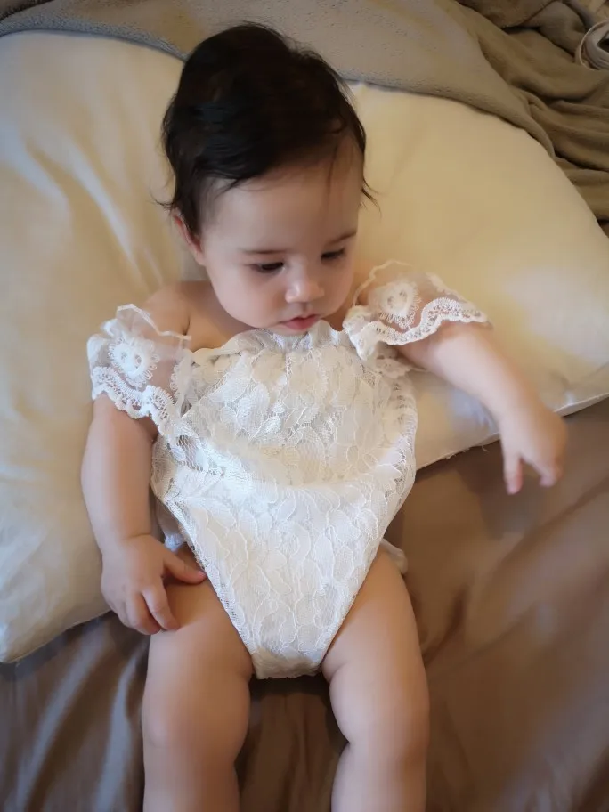 Однотонное Кружевное боди с открытыми плечами для маленьких девочек