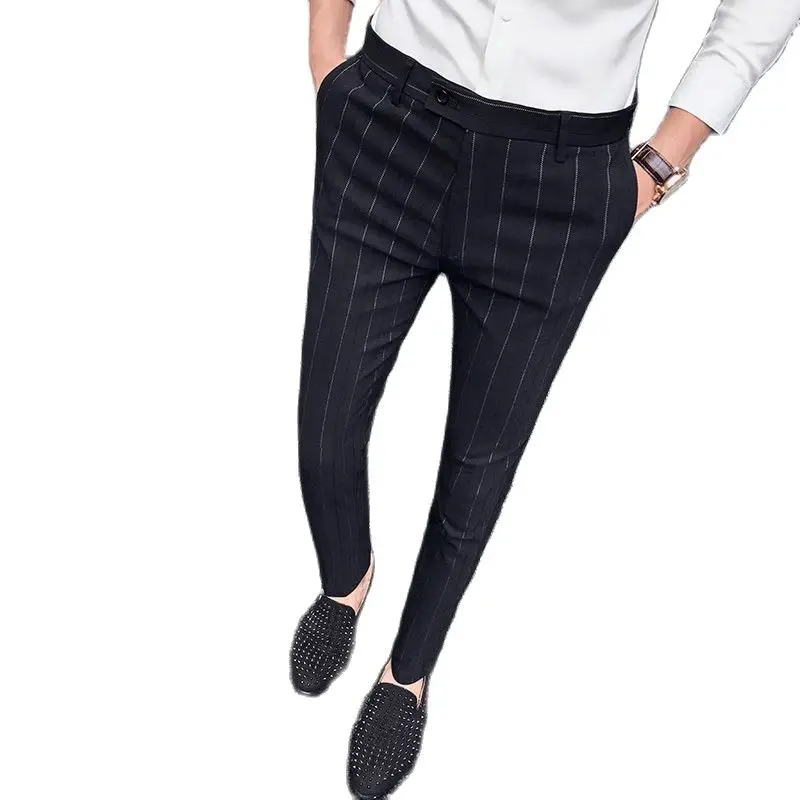 Мужские строгие брюки в полоску, весенне-осенние Костюмные брюки, хлопковые облегающие повседневные брюки для деловой свадьбы, размера плюс 28-36