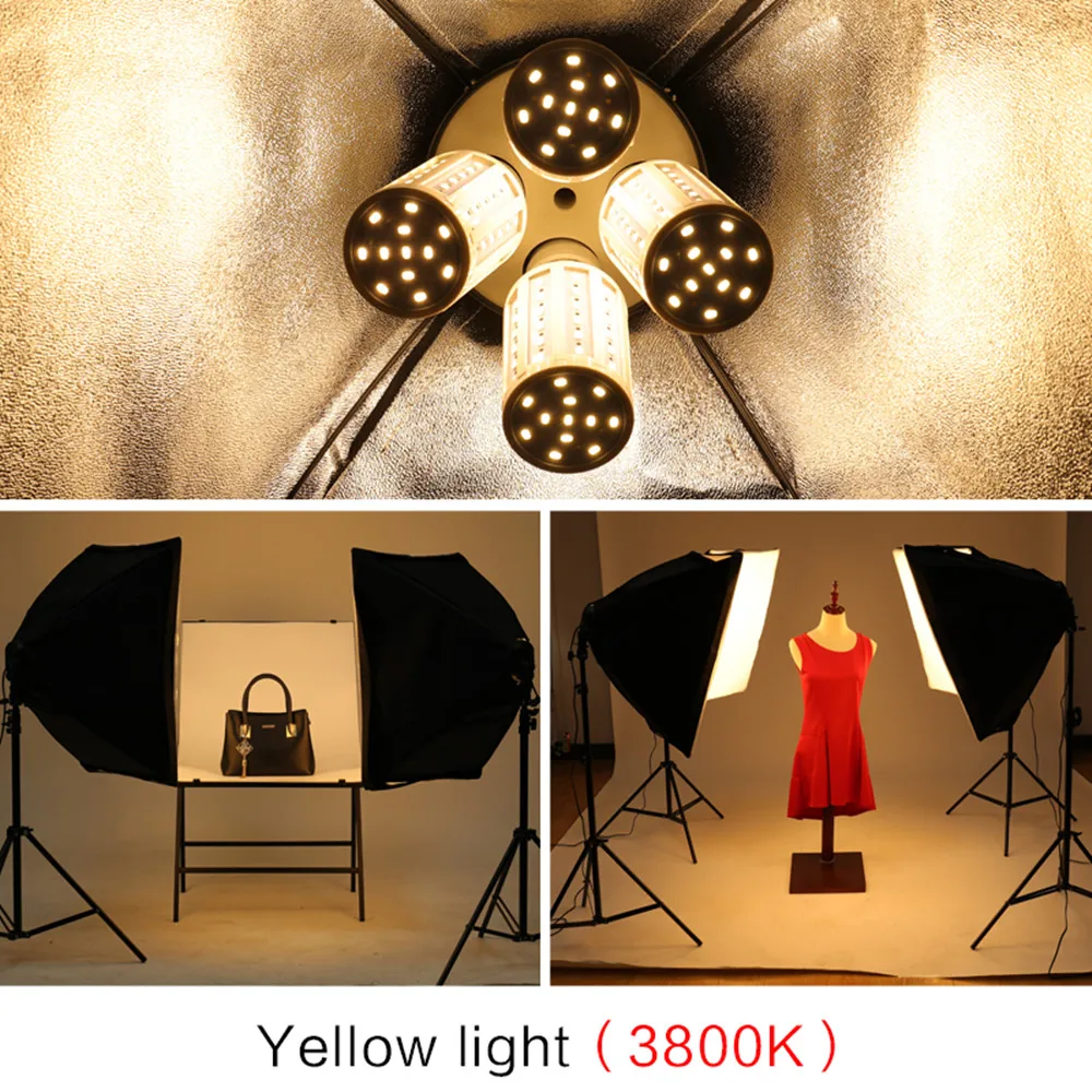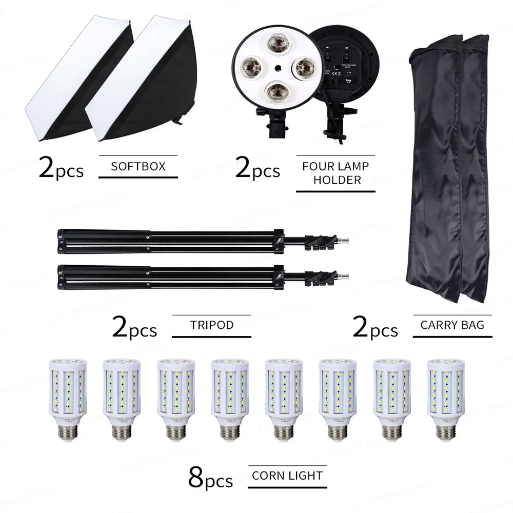 2 x четыре держателя лампы2x50x70 софтбокс2x2 м светильник-подставка8 x светодиодный кукурузная лампа (желтый)1 x сумка Оксфорд