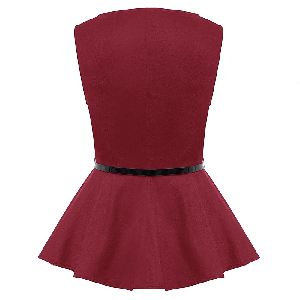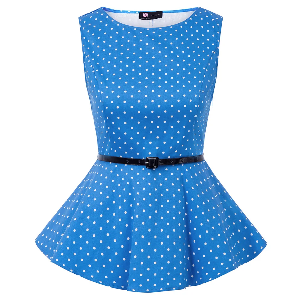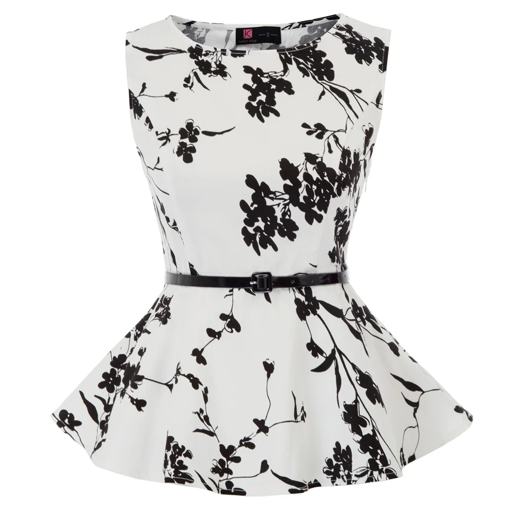 Женская блузка с цветочным принтом, без рукавов, с глубоким круглым вырезом и поясом, топы с баской на подоле, винтажная облегающая элегантная офисная рубашка для вечерние, новинка