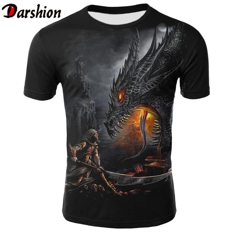 2019 Мужская футболка Повседневная футболка крутые драконы принт короткий рукав футболки летняя футболка уличная одежда забавная мужская одежда
