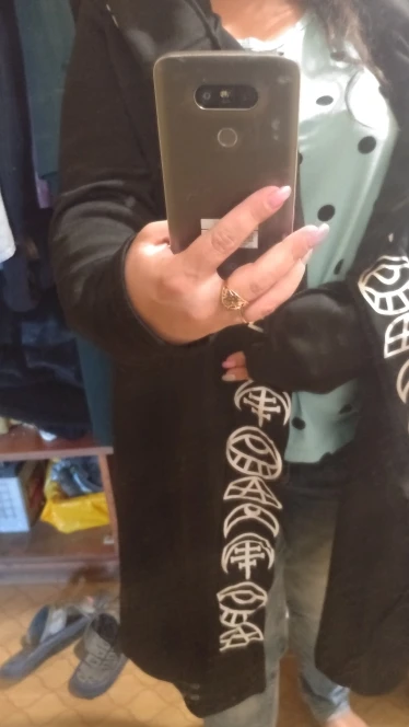 Ткань кажется немного синтетической, но она не раздражает, рисунки выглядят долговечно и не напечатаны, шляпа отличная, как на картинке! Мне понравилось, я запросил Размер S, и он идеально подходит для меня, он подходит к размеру, Просто подумайте, насколько он высок, как я измерил 1,55, Короче говоря, мне понравилось, И доставьте сумки по бокам, что делает это пальто еще лучше, это не займет много времени, чтобы добраться до Veracruz Мексика, Удивил меня :)