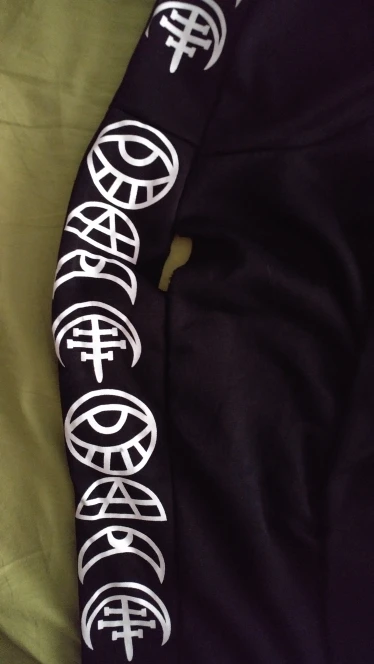 Прилично плотная толстовка! Не очень большой размер, но подходит для моего американского 20/22 тела в 5 раз. Капюшон большой и вместительный, а принт очень приятный! Мой Внутренний крон доволен.