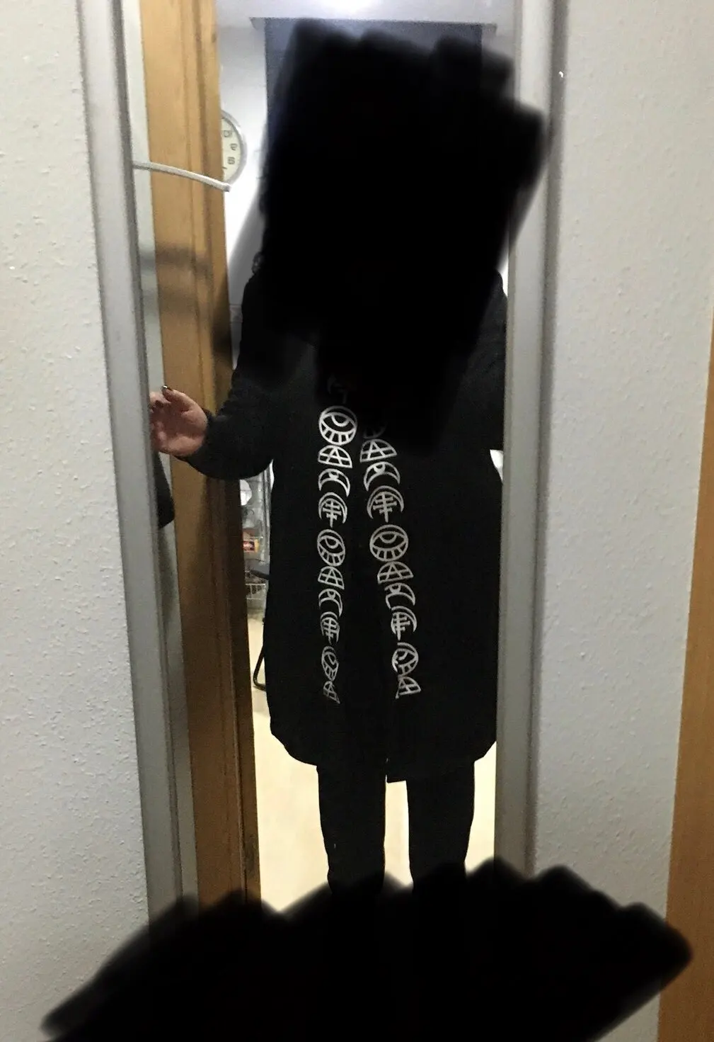 Женская толстовка с капюшоном, черная Длинная толстовка в готическом стиле, с принтом Луны, с длинным рукавом, Свободное пальто, толстовка с капюшоном, осень 2020