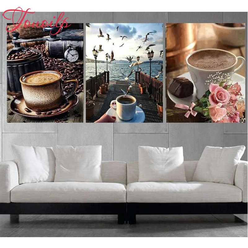 Алмазная вышивка сделай сам 5D 3 шт.компл., алмазная живопись, мозаика, полные квадратные и круглые чайки, чашка для кофе, вышивка крестиком, кухонный Декор
