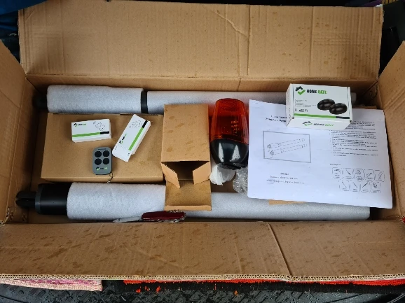 Спасибо большое продавцу за быструю отправку и доставку. Комплект для самостоятельной установки самое то. Но как говорится за такую цену нужно немного допиливать автоматику так как здесь не реализована остановка по концевикам или по времени. Как в более дорогих моделях. Из за этого при максимальном открытии ворот и максимальном выдвижении штока возможен изгиб привода (есть фото другого пользователя). Для открытия ворот наружу пришлось заменить пластину из комплекта на более короткий вариант, чтобы добиться раскрытия более 90 градусов. И реализовал концевик на перекидную щеколду ворот, чтобы ворота не начали открываться при случайном нажатии на кнопку открытия. Инструкция хоть и с корявым переводом но разобраться можно.
