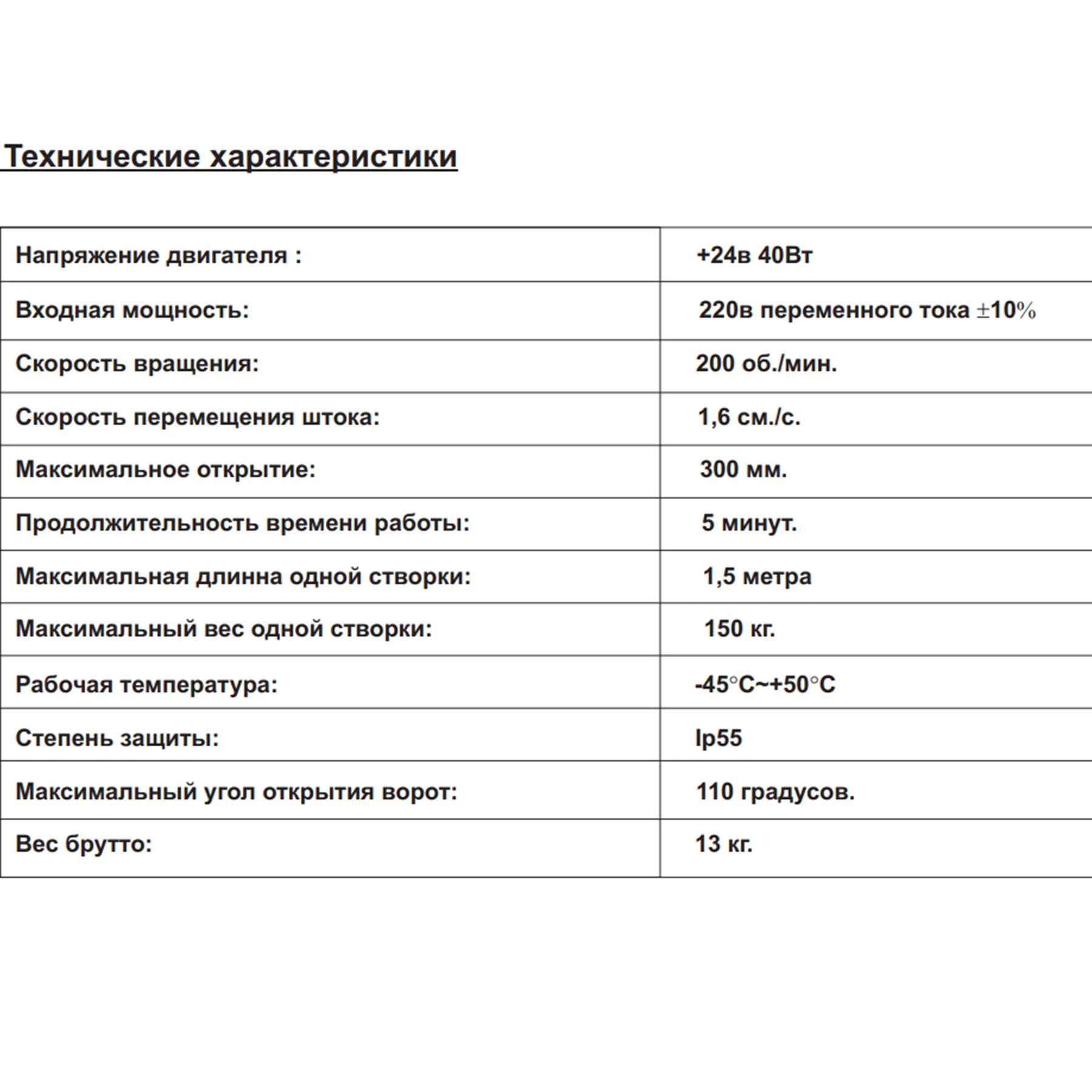 что же посылку получил, доволен. все проверено и установлено лично мной (ставил такое в первый раз). важные моменты: 1. плашки для моторов ставить строго не менее 9см от начала створки ворот, до точки крепления мотора, в противном случае створка заваливается за предел диагонали и назад без помощи не вернется. решается переносом внутренней плашки на 3см если внешняя плашка стоит на расстоянии 4 см. 2. болты для стяжки плашек, говно, похрумкал их обычным ключем на 13 (мой вес 70кг), хорошо советских ведро лежит было чем заменить. 3. на первом моторе должен находится притворок и + мотора должен быть слева, на втором справа. в этом случае вы получите режим калитки и открывание с задержкой ВО ВНУТРЬ, если открывается наружу зеркальте подключение моторов. отмечу важные параметры при настройке: p1-3 p2-10 p3-3 p4-10 p5-15 p7-3 p8-3 в целом все доволен, возьму ли еще? однозначно. пару комплектов еще нужно, но денег нет)) был бы рад скидке побольше, взял бы еще)) главное что бы жили они))