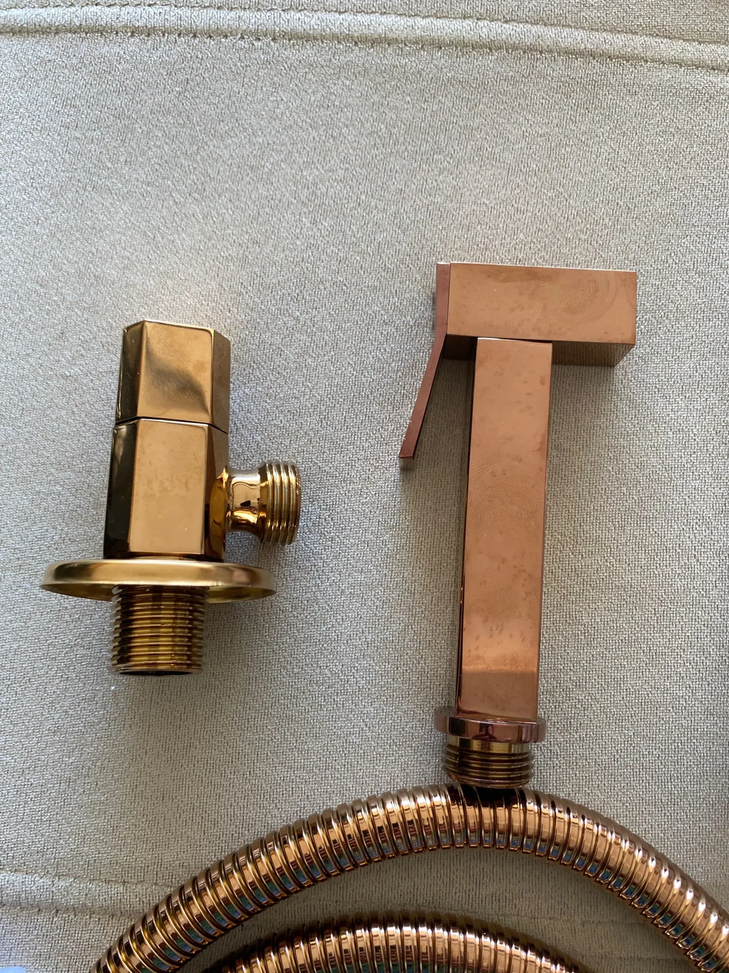 Ручной распылитель для биде из твердой латуни, розовое золото, квадратный унитаз, двойной, медный клапан, Душевая насадка AP2180