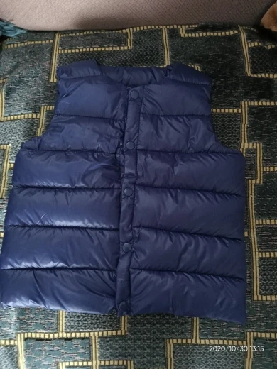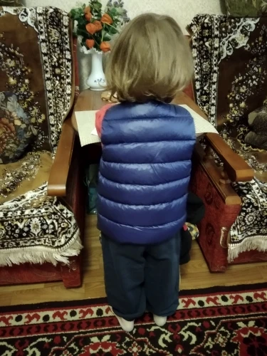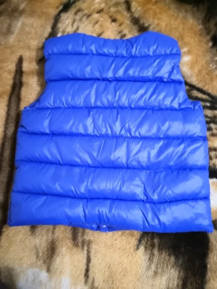 Жилет пришёл за месяц до Израиля. Тонкий на синтепоне, незнаю что с ним будет после стирки. Заказывала размер 4Т на 2 года - рост 89 см, вес 13кг, сел хорошо , размер в самый раз. Кнопки застегиваются с двух строн, подумала что она 2х стрононняя, но с внутренней стороны на плечах шов.Цвет синий смотрится как на картинке. Швы прострочены, но есть места где наполнителя чуть больше, а где-то меньше. Нитки были немого возле горловины, в целом качество хорошее за эти деньги. С продавцом не общалась, товар хороший.