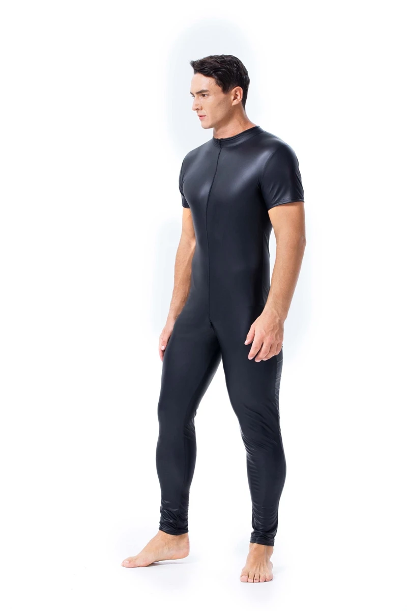 Мужской костюм из искусственной кожи wetlook, латексный Облегающий комбинезон из ПВХ с двойной молнией и открытой промежностью, сексуальное нижнее белье для геев