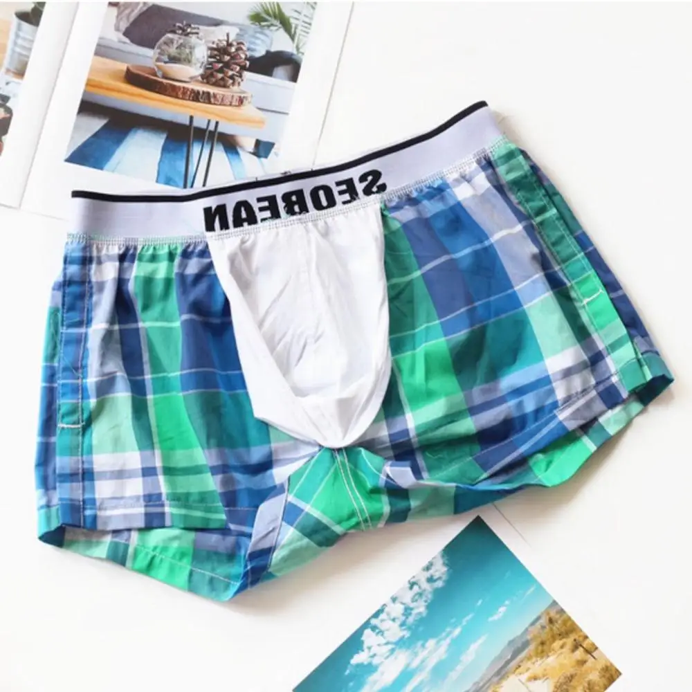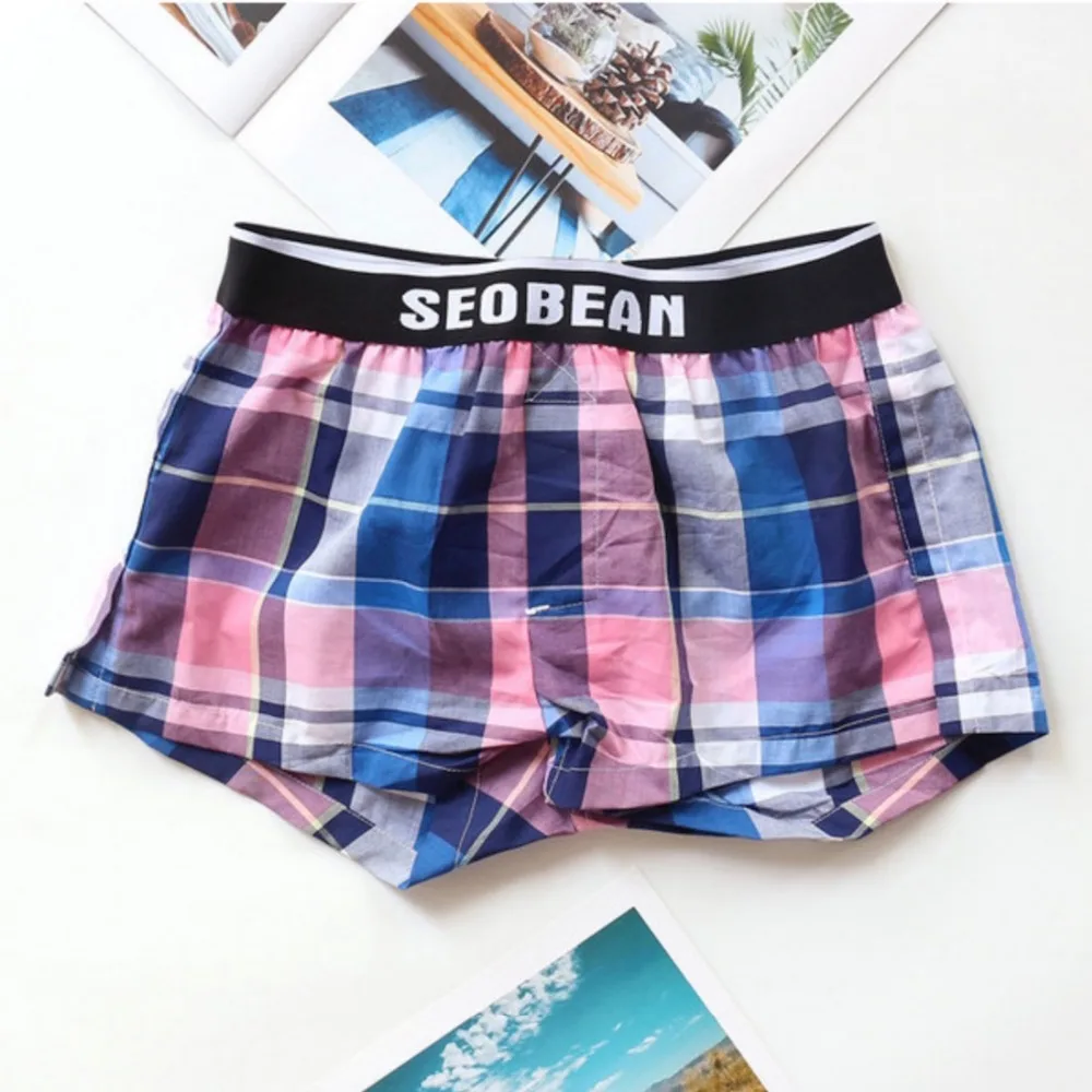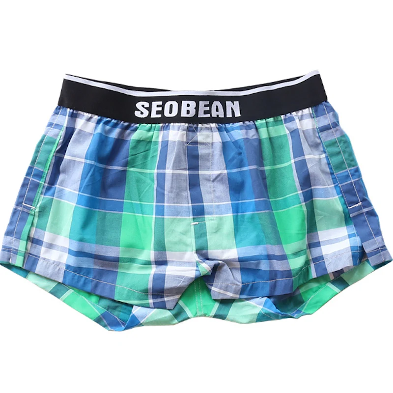 Пижама SEOBEAN мужская хлопковая, шорты-боксеры с u-образной подкладкой, в клетку, домашний тренировочный костюм, Повседневная Пижама для сна