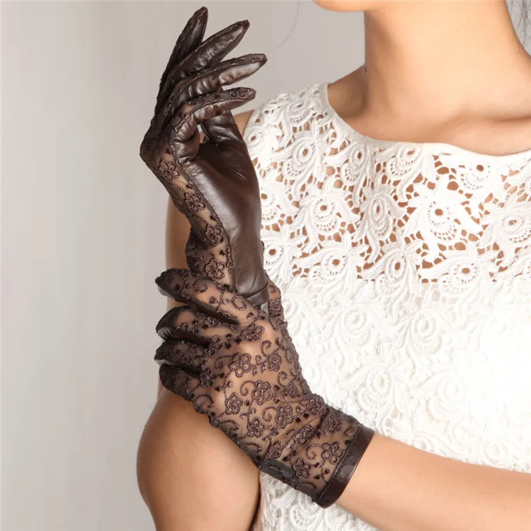 Перчатки женские из натуральной кожи, перчатки из овечьей кожи с кружевом, Модные Элегантные Короткие стильные, L023N2, весна-лето