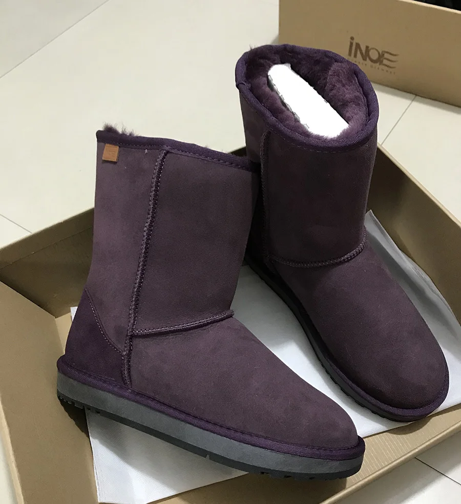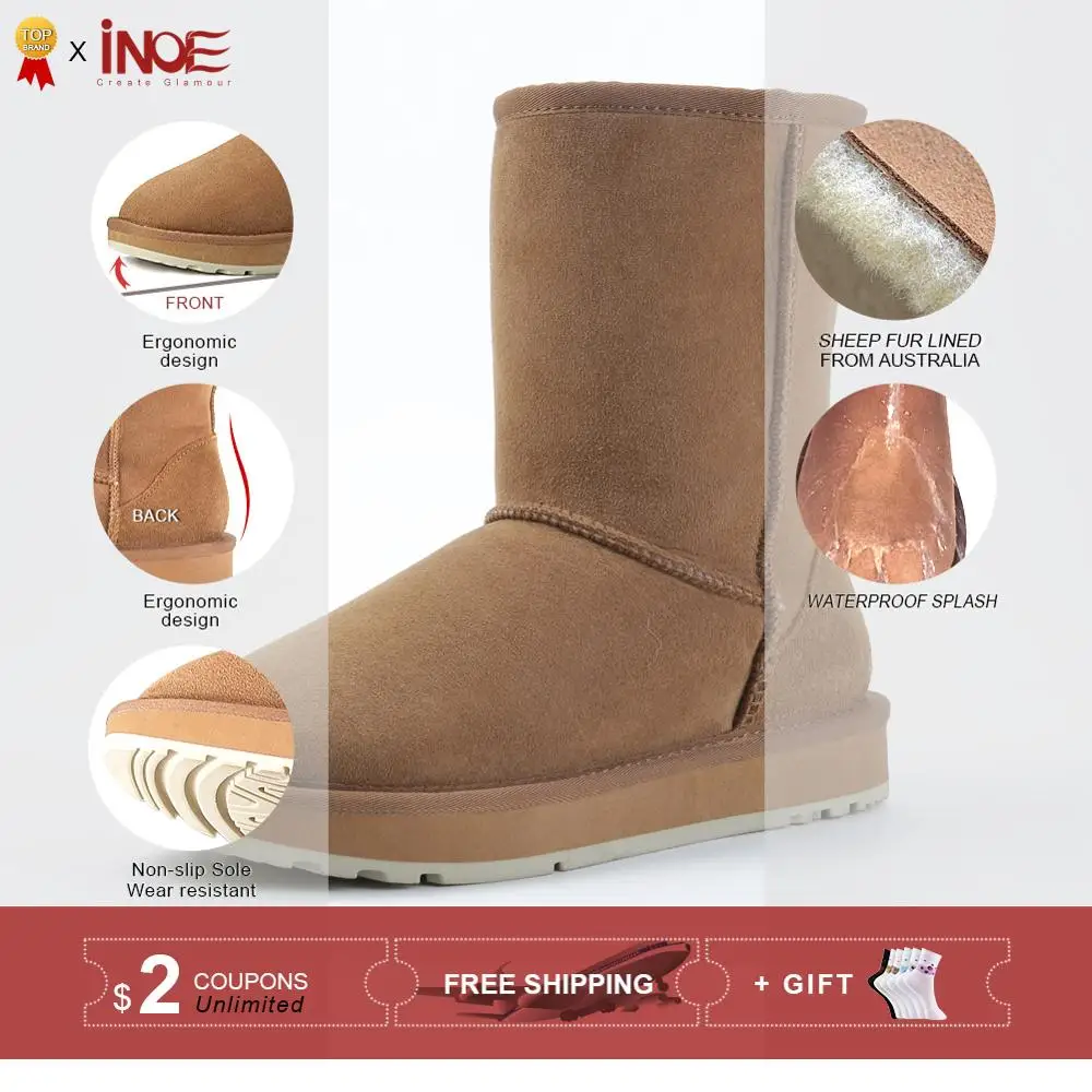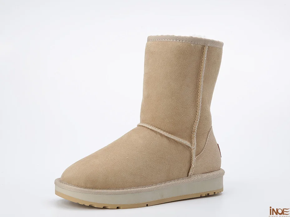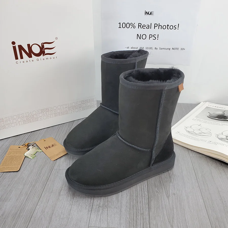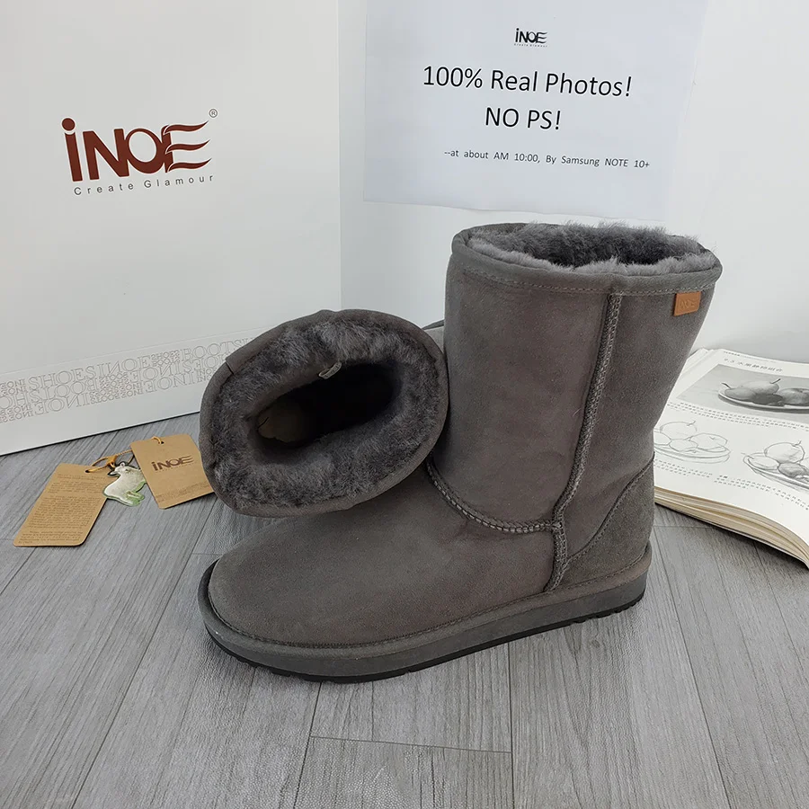 INOE женские модные повседневные зимние зимние сапоги из натуральной овчины и замши теплая обувь на меховой подкладке из натуральной овечьей шерсти непромокаемая обувь на плоской подошве