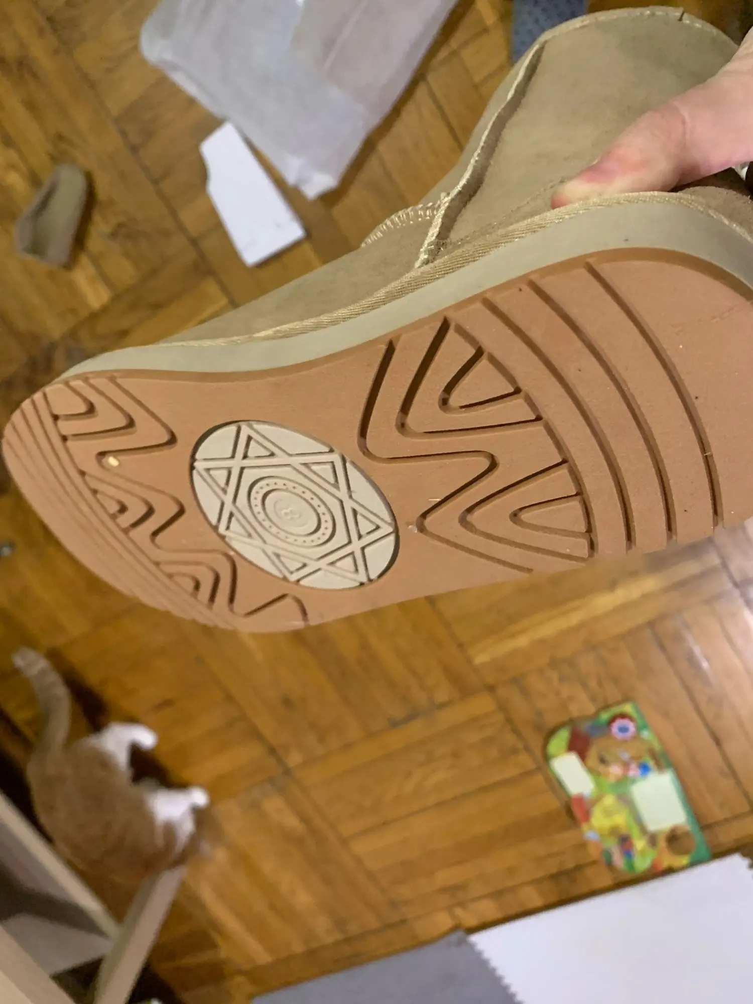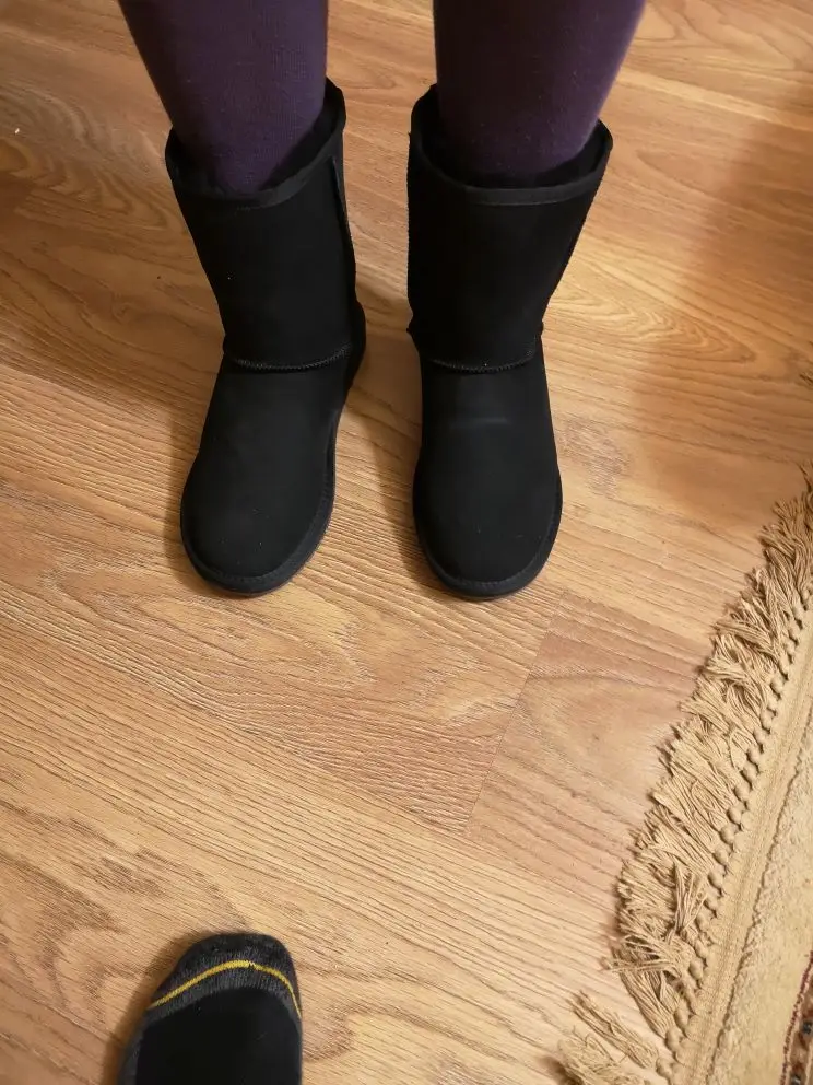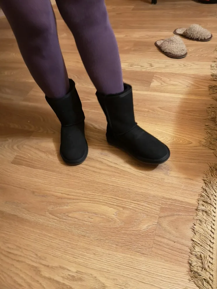 Посылка в Украину шла практически месяц. Угги пришли без коробки, как открыли посылку был запах клея. На стопу 24.5 взяла размер 8, пошли идеально. В целом угги не плохие, посмотрим как будут в носке. Продавец в подарок положил носочки.