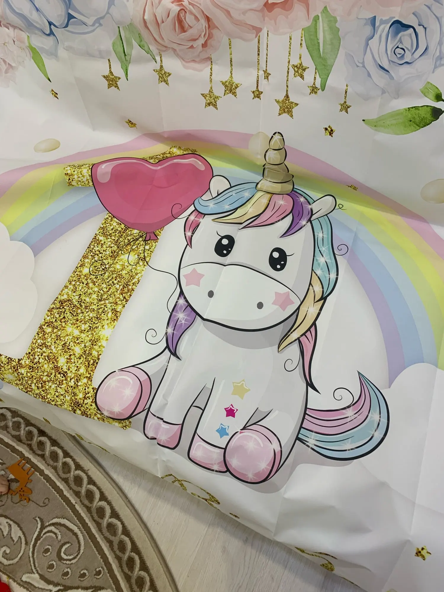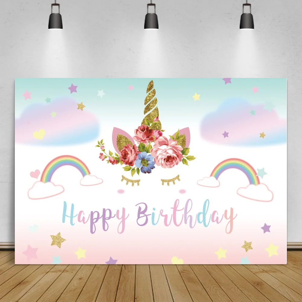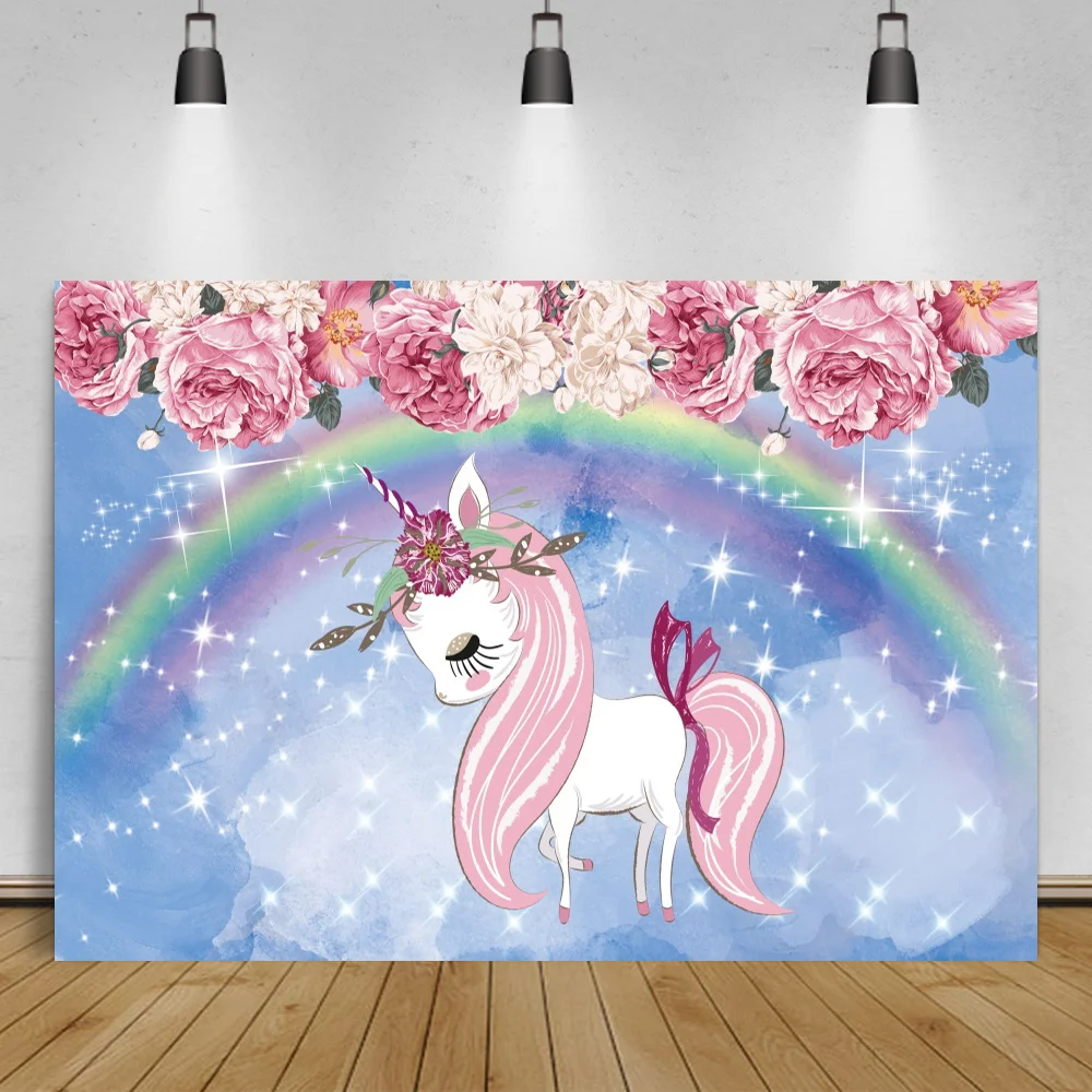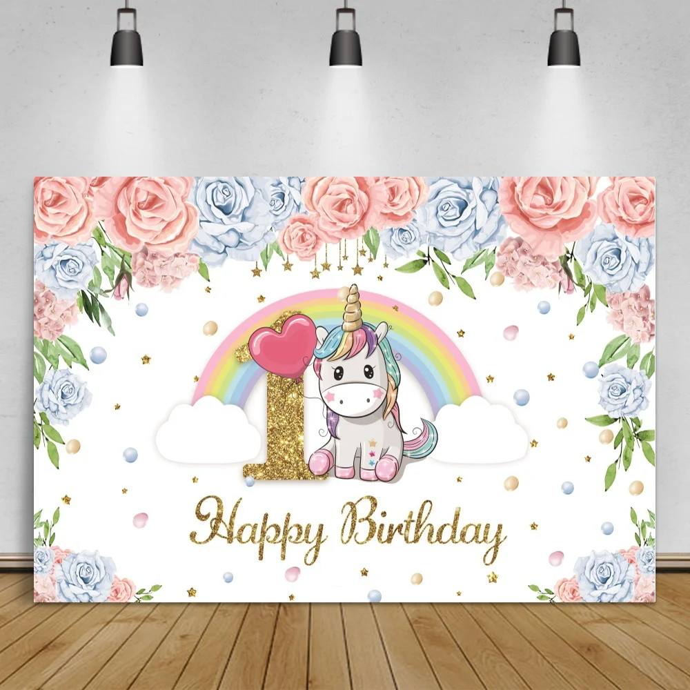 Laeacco Baby 1-й День рождения Единорог вечерние радужные цветы фотосессия плакат семейная Съемка фото фон фотография задник