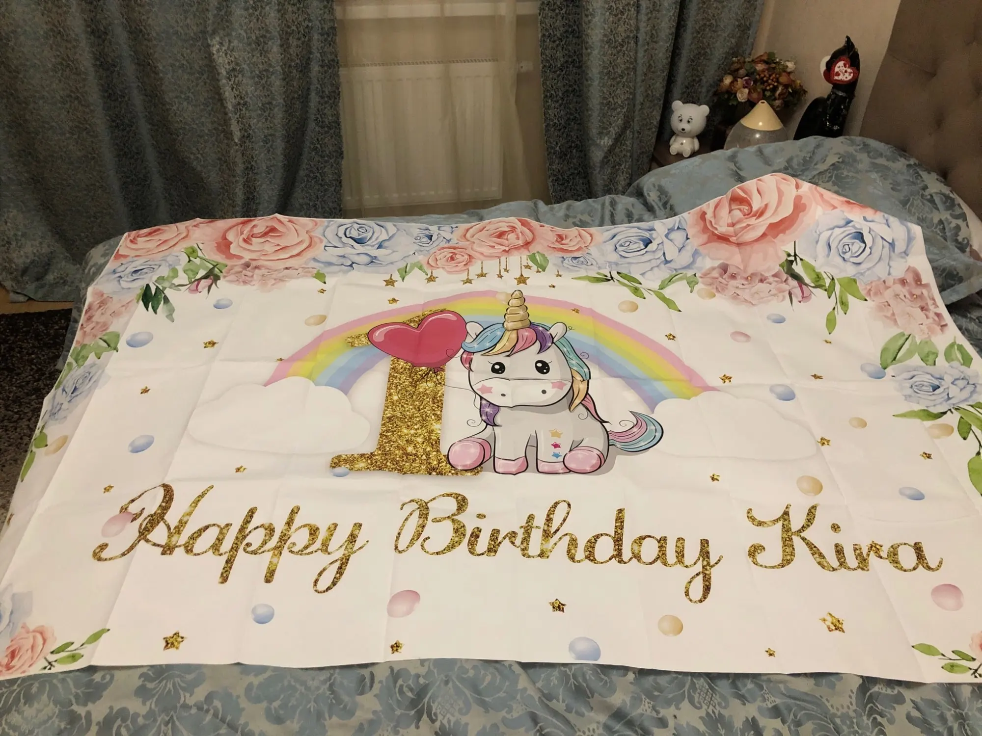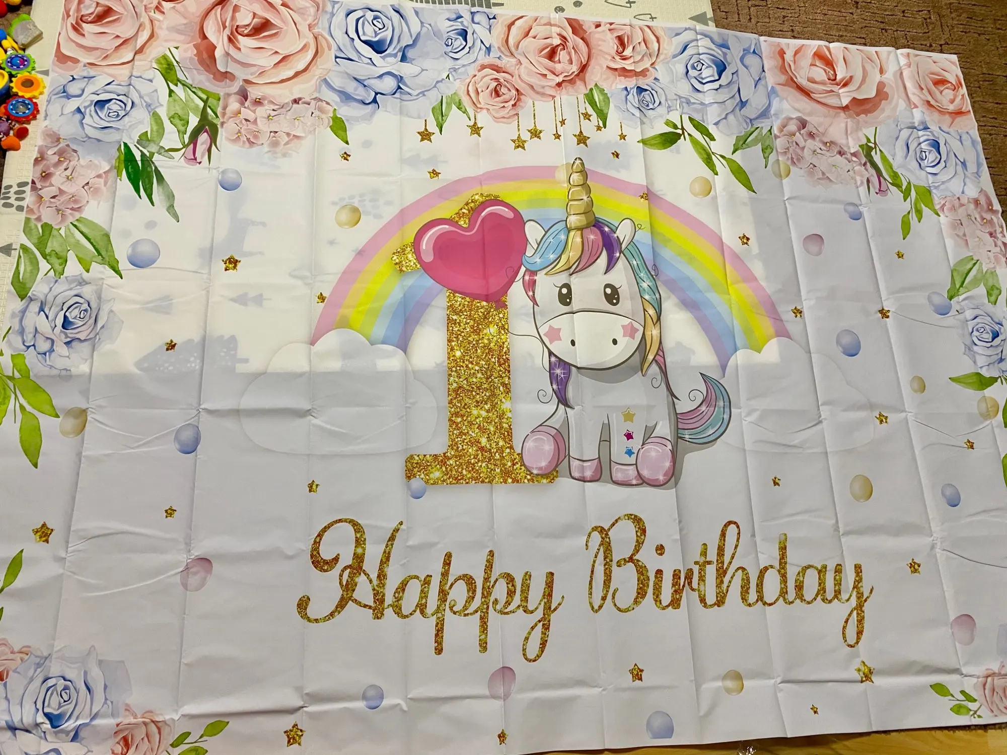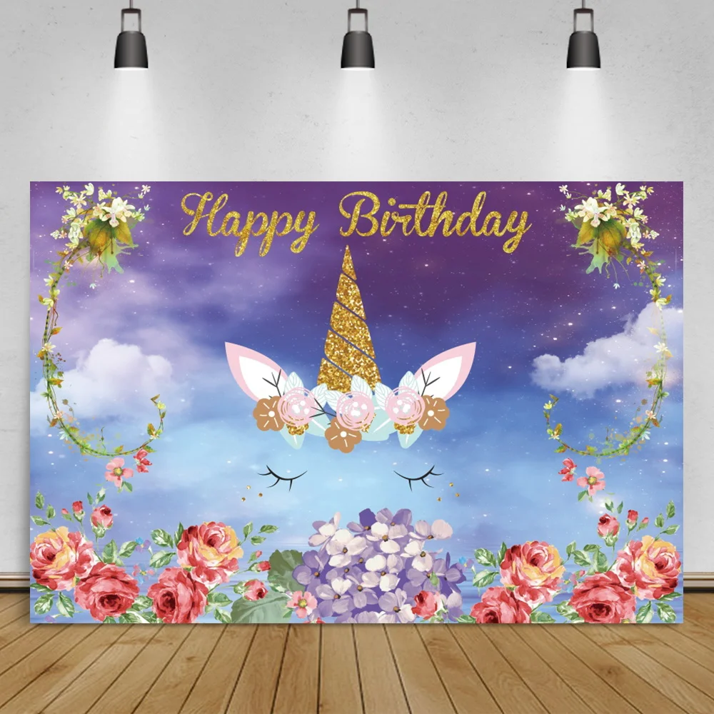 Laeacco Baby 1-й День рождения Единорог вечерние радужные цветы фотосессия плакат семейная Съемка фото фон фотография задник