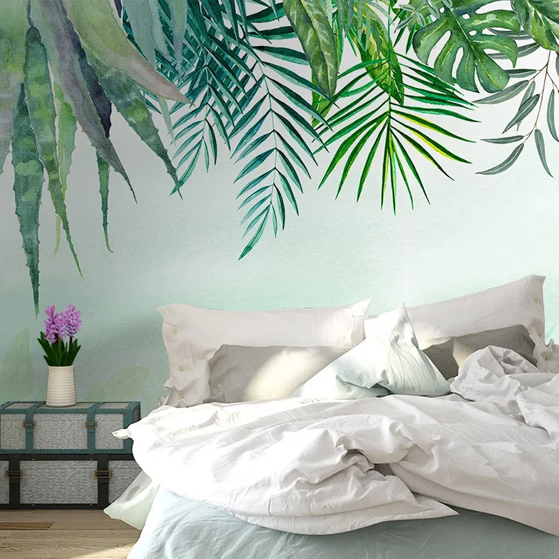 Пользовательские Настенные обои 3D акварель зеленые листья кактус Фреска гостиная телевизор спальня в скандинавском стиле настенная живопись 3D обои