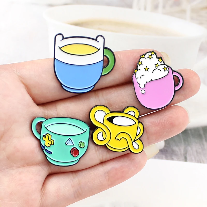 Эмалированная булавка в виде чашки с героями мультфильмов Время приключений, Финн Джейк, для детей, детские подарки, ювелирные изделия, аксессуары для рюкзака, броши