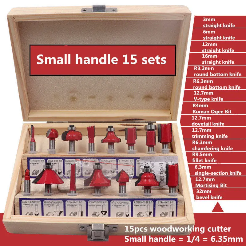 Набор фрез с хвостовиком 6,35 мм для деревообработки, 15 шт.