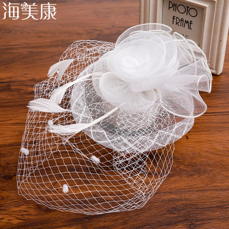 Haimeikang перо цветок сетчатый головной убор сетка пряжа цветок топ шляпа Женская Очаровательная Заколка-шляпка шляпа-котелок с вуалью Свадебная вечеринка шапка для торжественных приемов
