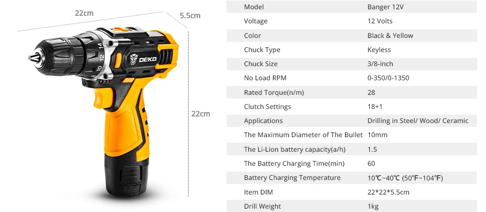 DEKO 12V электрическая дрель отвертка с мини Беспроводной DC сверлильный станок литий-ионный Батарея Мощность инструменты (DKCD12FU-Li)