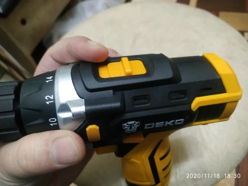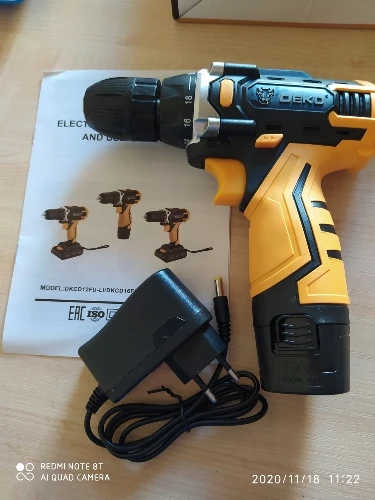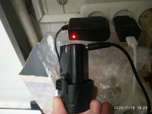 5 дней доставка - рекорд для деревни и нашей почты ! Ура! Заказал на распродаже вечером 12.11.2020 , получил утром 17.02.2020 по почте. Крутит хорошо. Два режима - быстрые обороты для дрели, медленные для шуруповёрта ( в среднем положении жёлтой кнопки пусто, внимательнее ) . Также есть кнопки крутить в право, лево, заперто -чтобы случайно не включить. Есть "светофор" заряженности литиевого аккумулятора и фонарик подсветки. Органомичная удобная ручка. Аккумулятор вынимается сдавливанием двух кнопок - очень туго. При ПЕРВОМ вынимании вылетела железная скоба - стрелочками показал. В моём лоте один аккумулятор. Можно купить дополнительные аккумуляторы у этого продавца. Аккумулятор не смог разобрать, увы. Чувствую внутри простое сопротивление или диод. Зарядник выдаёт 13.5V и как понимаю, сам не отключает зарядку. Поэтому когда красный светодиод сменится на зелёный ( около 12.6V ) отключить зарядку. Короче : на ночь нельзя на зарядку и следите. Шуруповёрт-дрель увесистый. 5 звёзд.