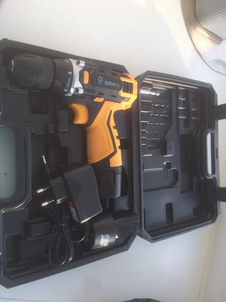 Доставка курьером до Копейска за 13 дней. Упаковка и товар без повреждений. В комплекте зарядник. Качество материалов и сборки очень достойное. Индикатор заряда функциональный, аккумулятор держится надёжно в гнезде. Рукоятка и корпус обрезиненные и довольно хорошо. Приобрел на распродаже всего за 830 р, поэтому продавцу и Али огромное спасибо. До этого брал Эл. отвёртку, до сих пор пользуюсь, всё устраивает.
