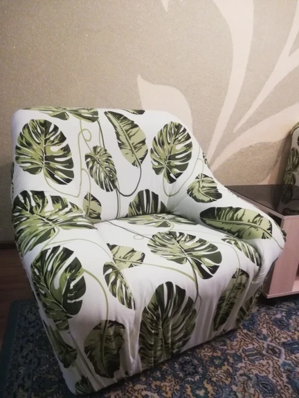 Чехол хороший, ткань тонкая но выглядит хорошо. По размеру сел чехол на большое кресло очень хорошо, смотрится очень красиво. Доставка и отправка быстрые 2 недели в Тверь. Спасибо!