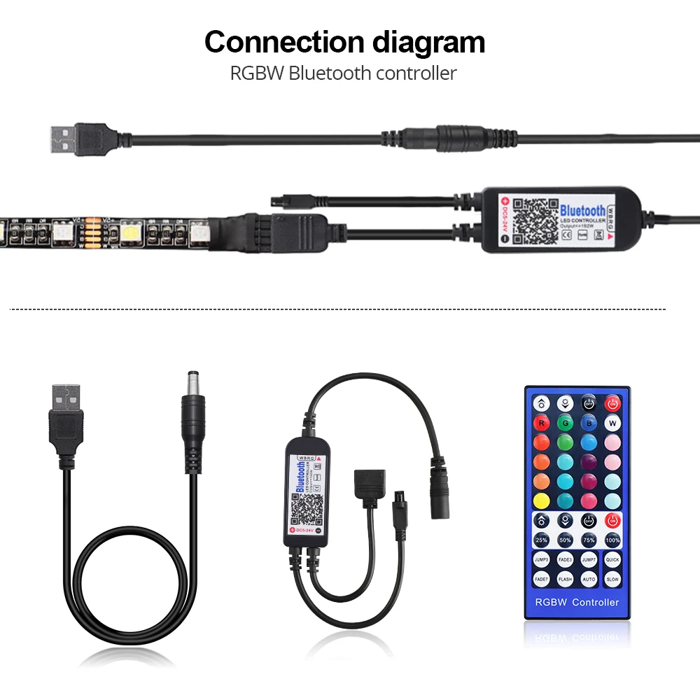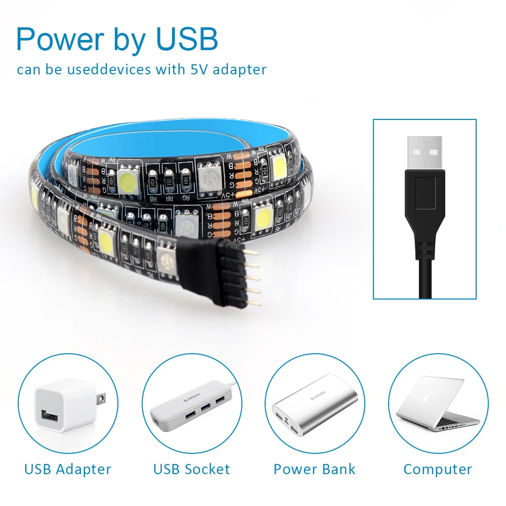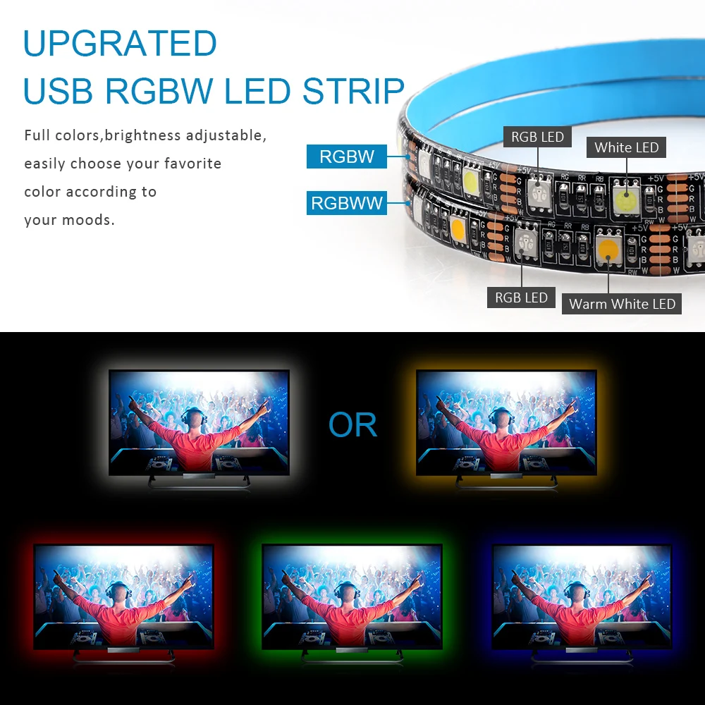 Светодиодная ленсветильник 50 см, 1 м, 2 м, 3 м, 4 м, 5 м, RGBW, RGB, 5 В, Светодиодная лента с ИК-контроллером 40 клавиш, для фосветильник щения телевизора, ПК