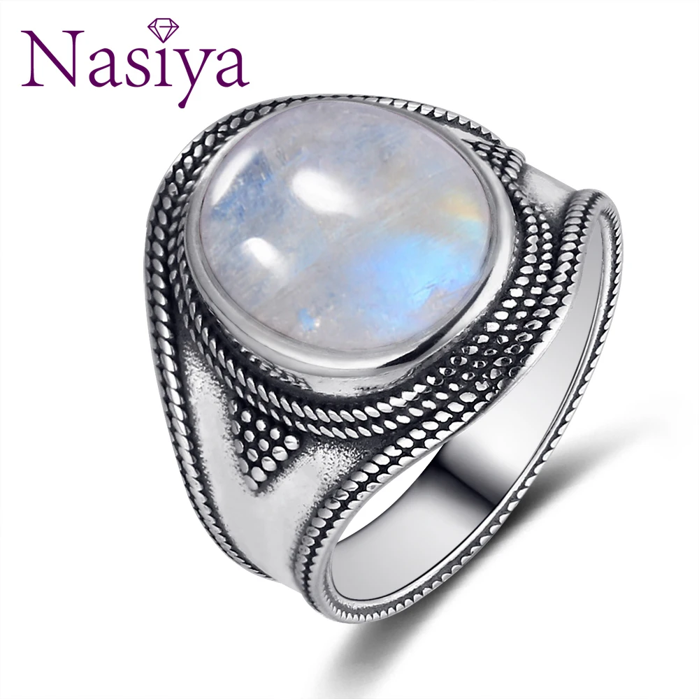 Nasiyaбольшие овальные кольца с лунным камнем 10x12 мм, серебряные кольца с драгоценными камнями для мужчин и женщин, оптовая продажа, Прямая поставка
