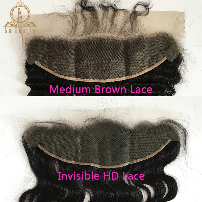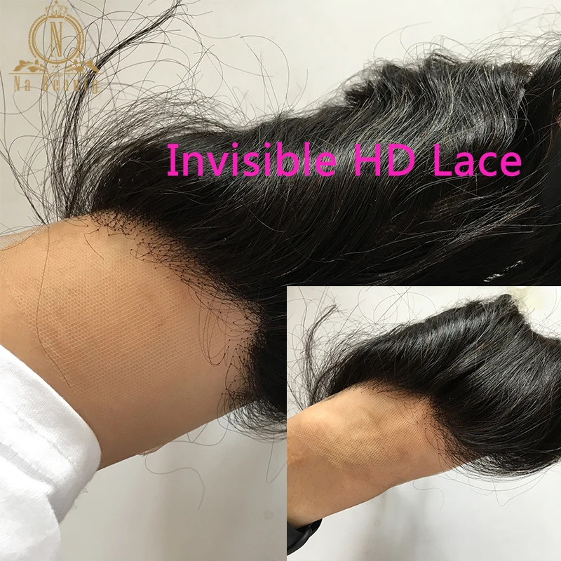 Невидимые HD Кружева Фронтальная волна тела бразильские волосы remy 13X4 высокой четкости Кружева Фронтальная Закрытие с волосами младенца предварительно сорвал