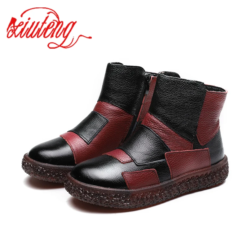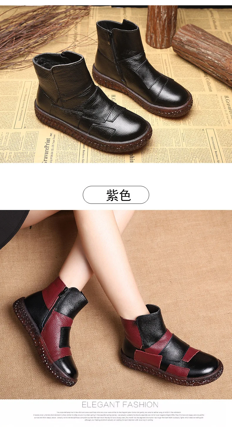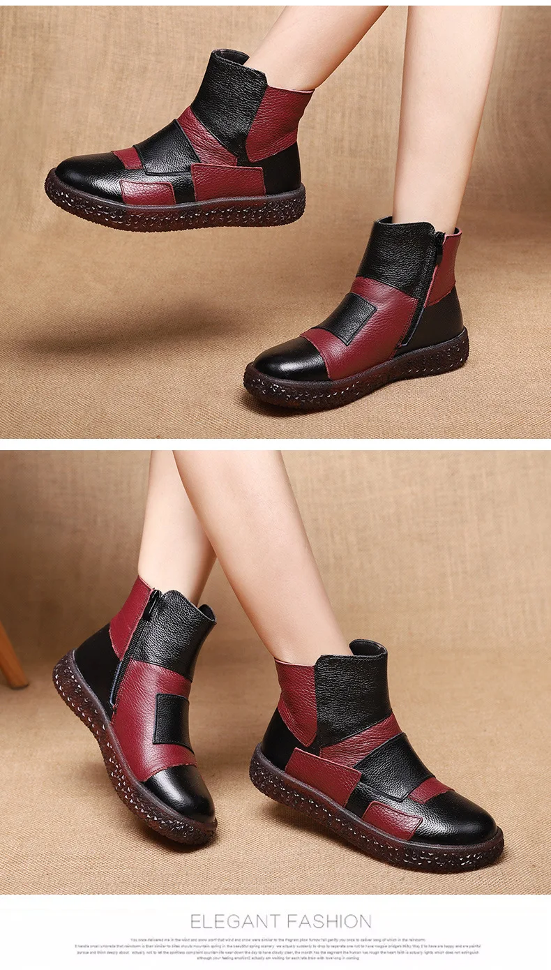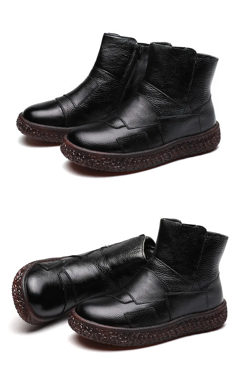 Женские кожаные ботинки на плоской подошве, с круглым носком