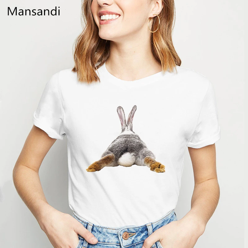 Футболка женская, с принтом кролика, пухлая попа, 2021, летние топы, футболка в стиле Харадзюку, Женская забавная футболка