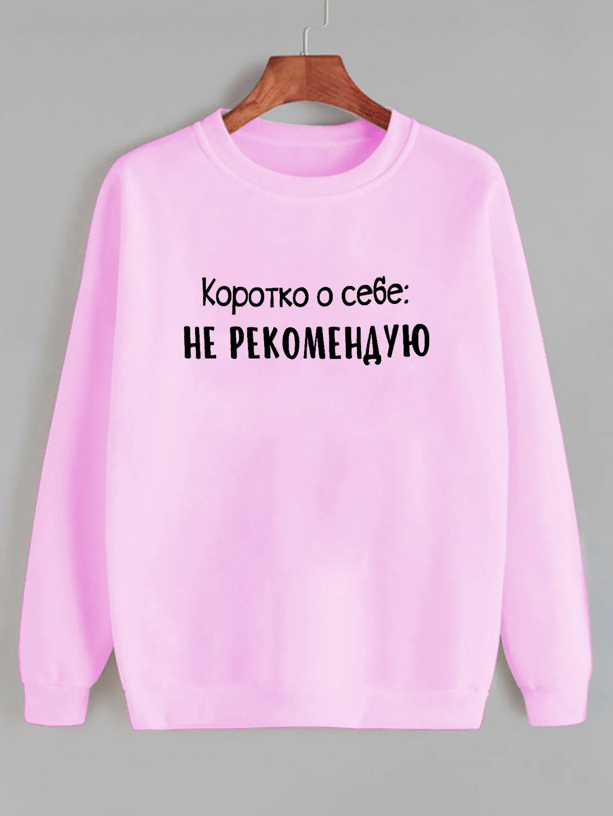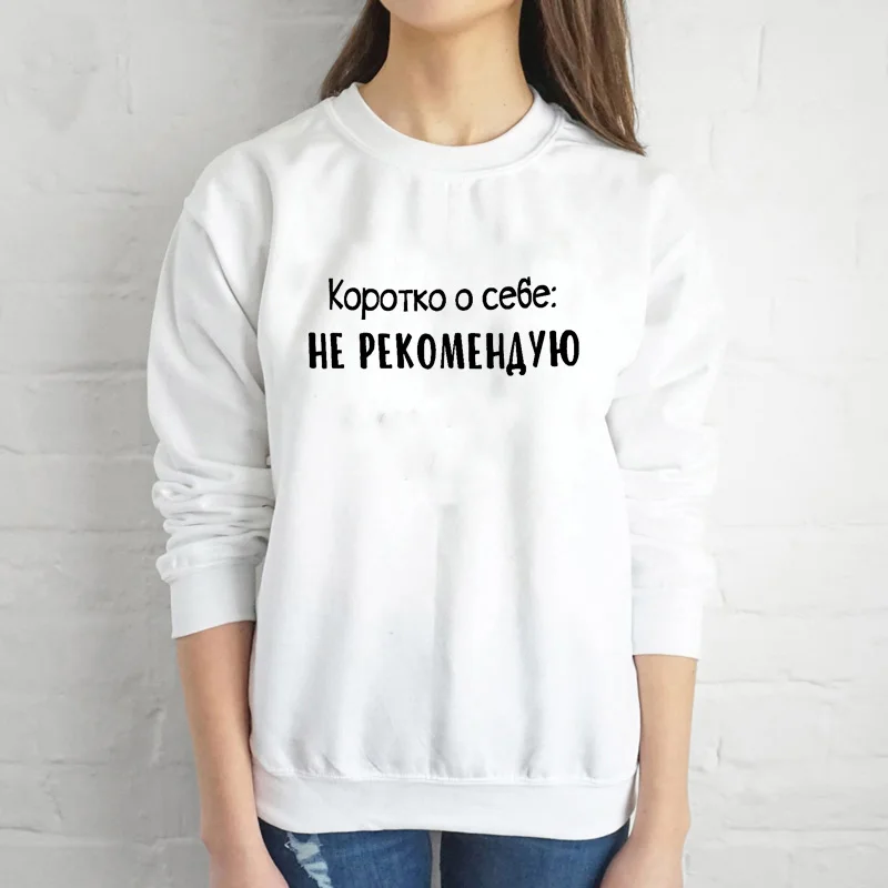Толстовка Коротко о себе не рекомендую Русское письмо с принтом Новое прибытие Женская куртка с длинным рукавом Повседневная Хлопок Топы