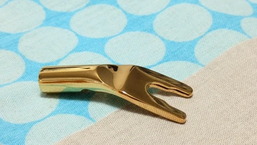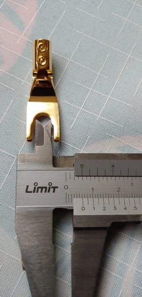 лопатки не очень большие, в самой широкой части - 7мм и может войти не во всякий зажим, под золочением металл очень похожий на медь, но лопатки совсем немного магнитятся