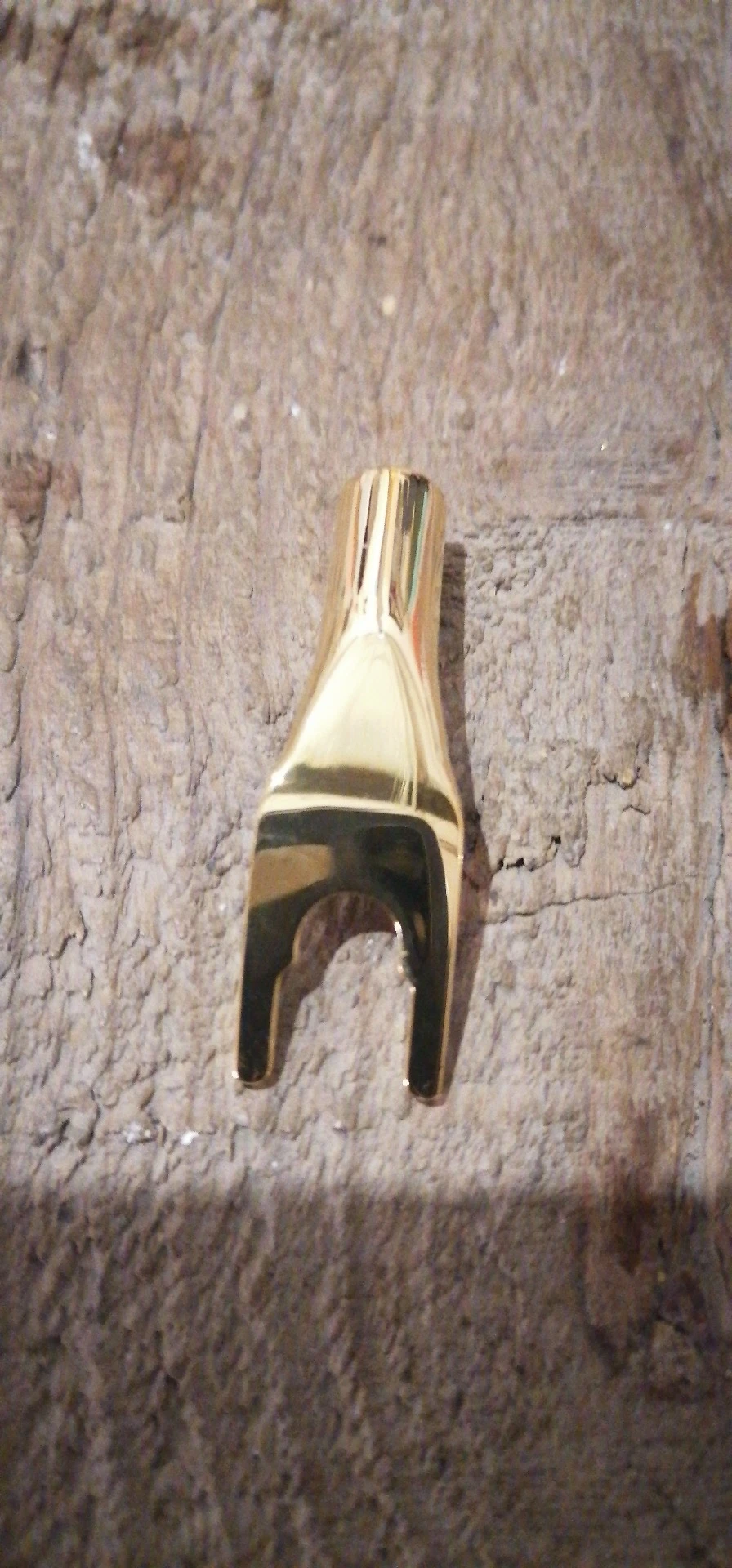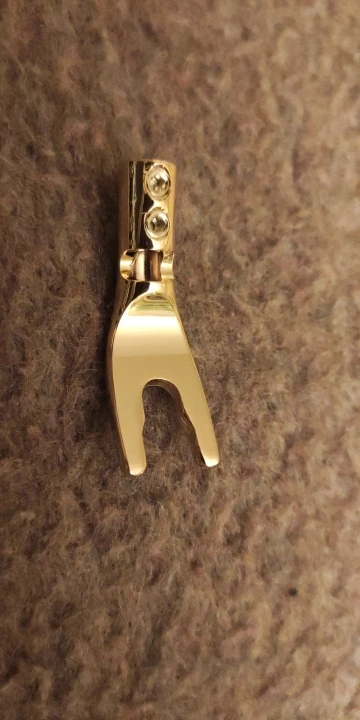 Красивая отделка. Огромный. Не подходит прямо к разъему динамика, но только под углом, потому что пространство между лопатками вилок меньше.