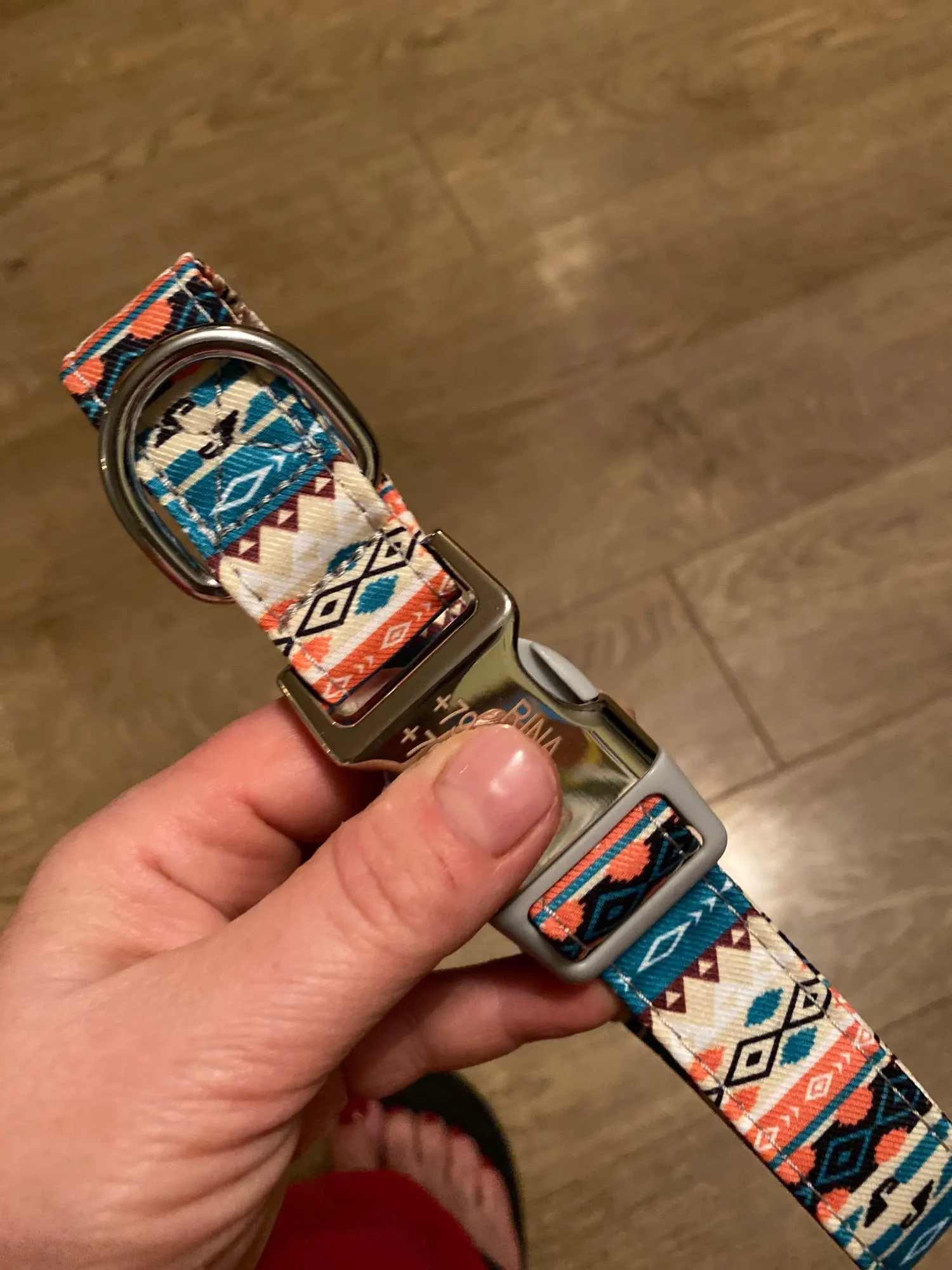 Это очень красивое и стойкое ожерелье. Гравюра выглядит великолепно. Я взял свою суку размер М, она весит около 11 кг. это средняя/маленькая собачка. Ожерелье довольно регулируется, как вы хотите, оно было довольно свободным и идеально подходит. Доставка прибыла через 2 недели или около того. Очень доволен заказом.