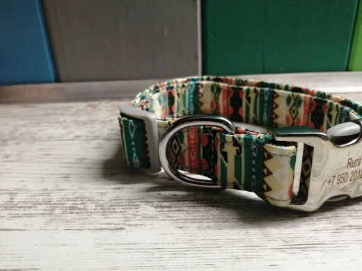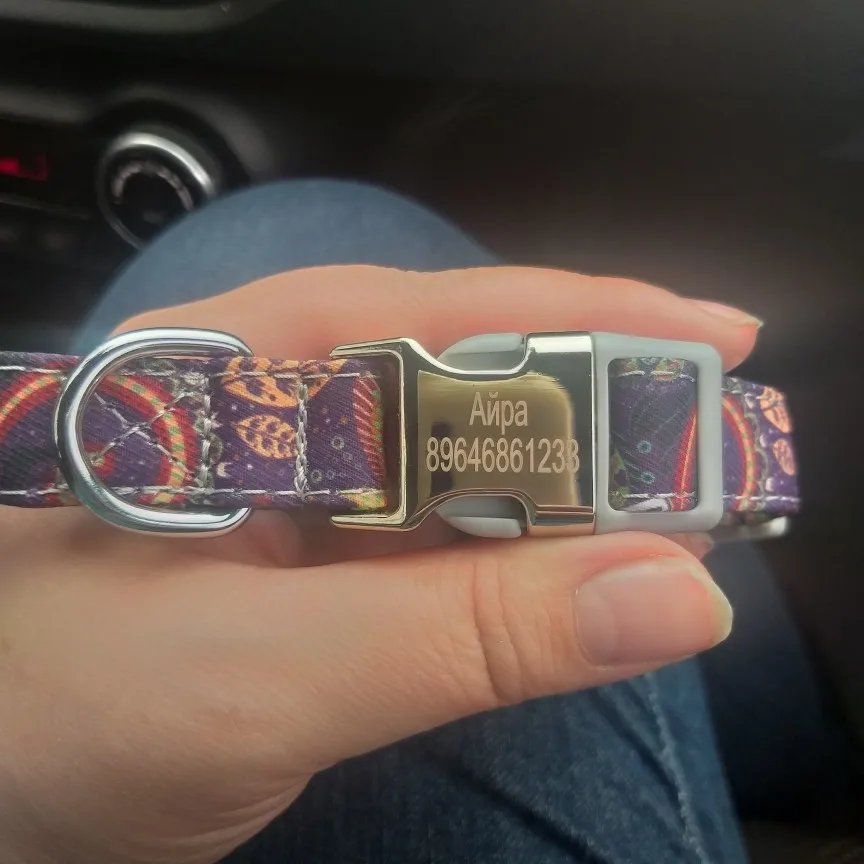 Ошейник шикарный и практичный. Приятный материал и расцветка. Продавец очень быстро отреагировал на пожелание -нанести гравировку и быстро отправил товар.Доставка до Ленинградской области заняла 15 дней.