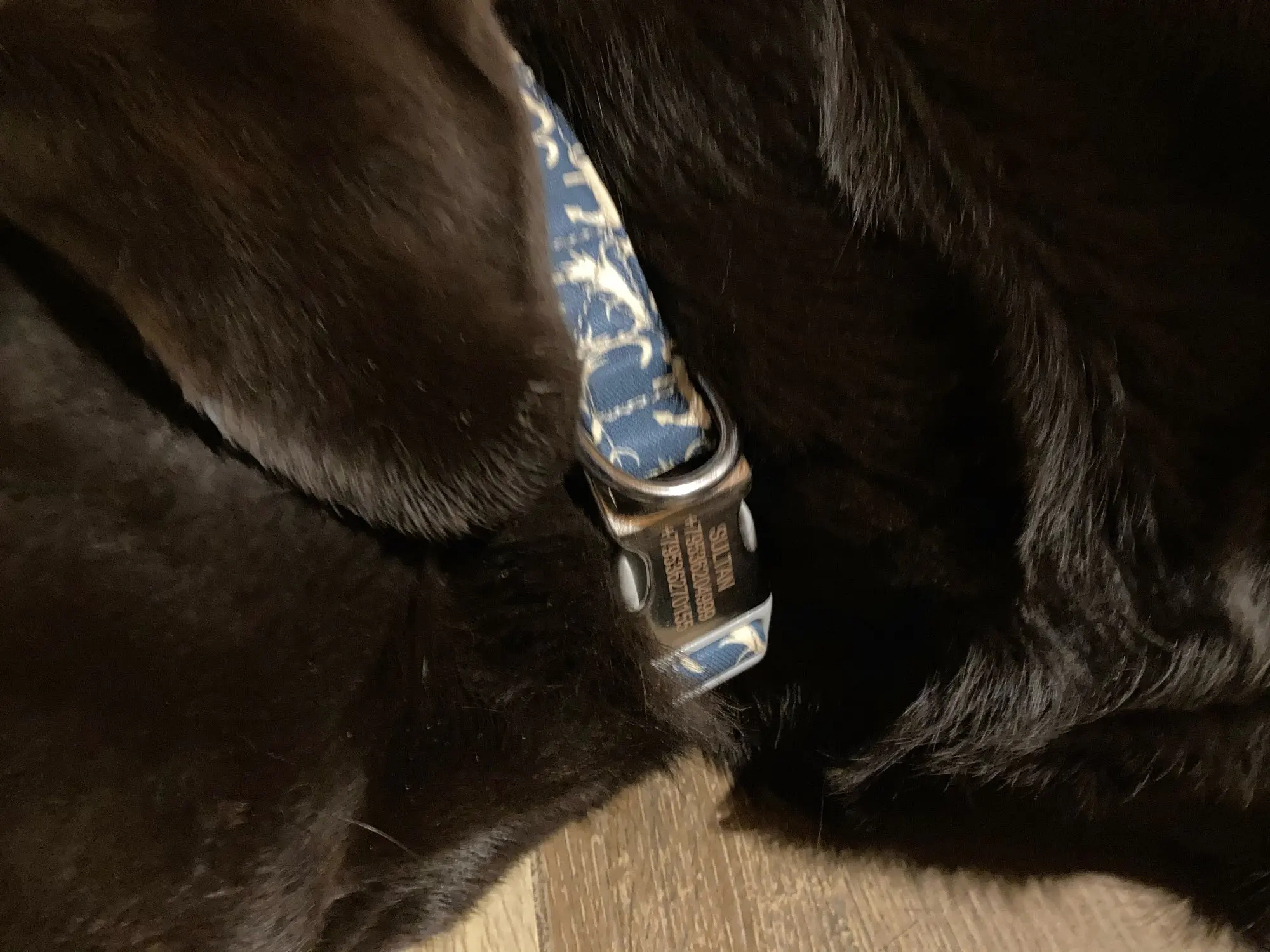 Fajne wykonanie. Napis przyjemny jak pies ma na sobie obroże to napis nie rzuca się w oczy. Dostawa w 3 tygodnie