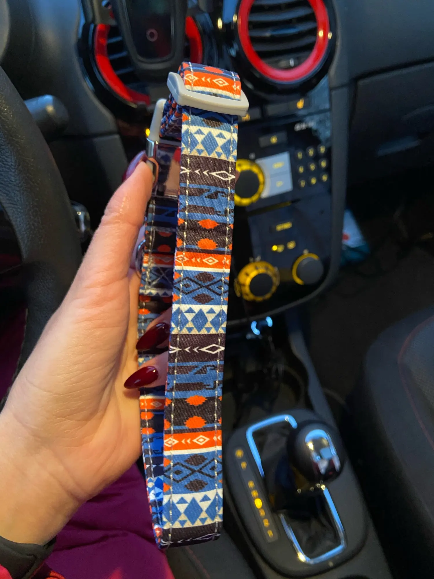 Отличный ошейник , можно подогнать под любой размер (маленькой собаки), для щенка подошёл прекрасно , легко застегивать и расстёгивать. Плюс выглядит красиво и стильно