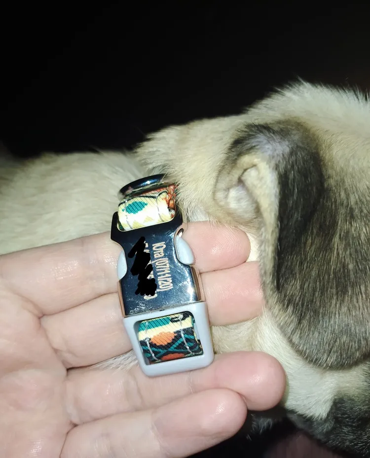 Хороший ошейник для собаки ) Подошёл самый маленький размер , на чихуа , и ещё свободно больше не утягивается Мягкий , но он в нём крутится с непривычки ))))) надпись имени и телефона чёткая , до Москвы доехал почти за 2 месяца , очень долго ((