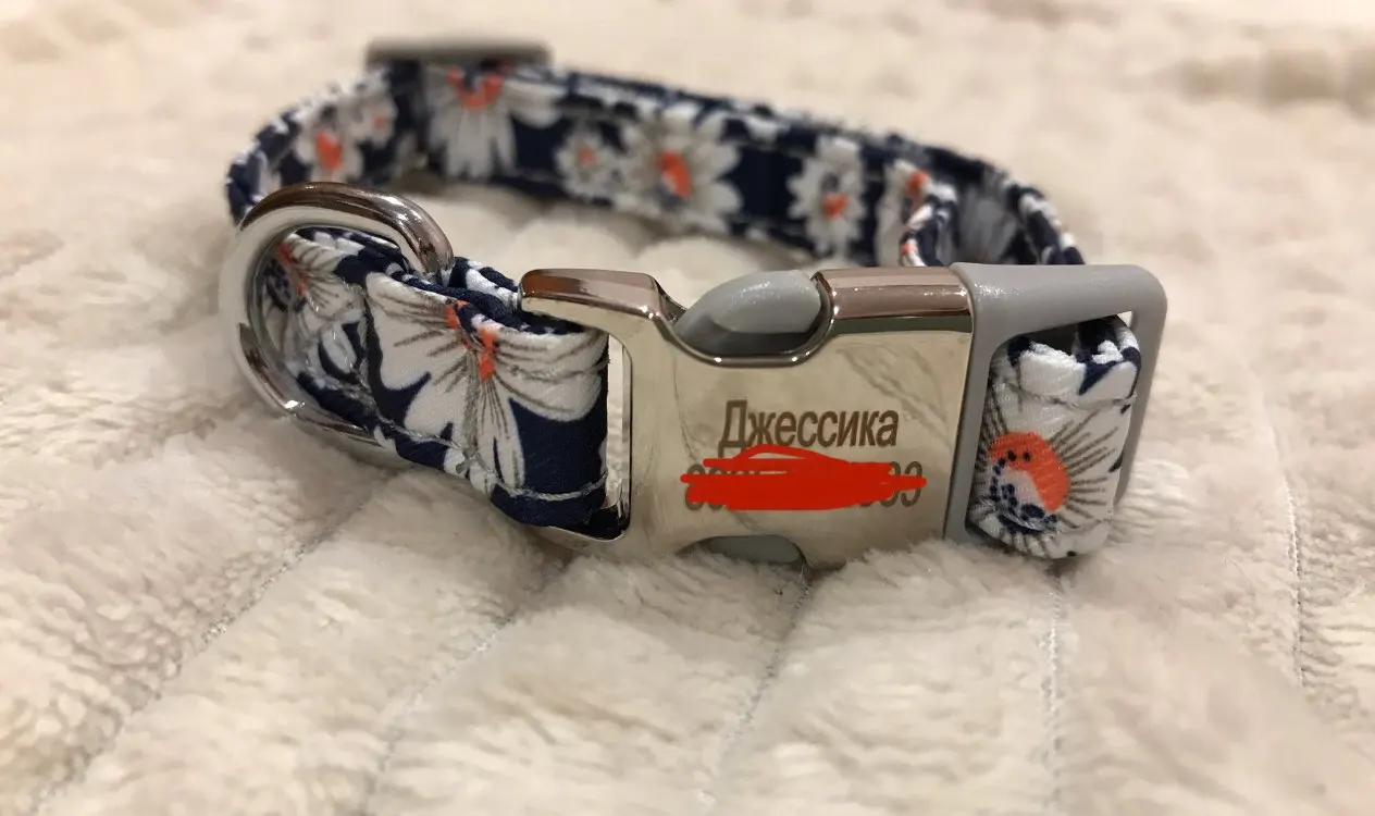 Ошейник удобный и нарядный.Надпись точно как заказывала.Доставка быстрая.Спасибо китайским друзьям!